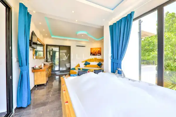 Villa Patara Botanik, 6 kişilik kapasiteye sahip villada 3 yatak odası yer alıyor. Villanın 4 banyosu, ısıtmalı havuzu, hamamı, saunası, jakuzisi bulunuyor. Açık mutfağı ve kendine ait bahçesinde bir havuzu var. Mutfağında bulaşık makinesi, buzdolabı, ankastre fırın, tost makinesi ve mutfakta ihtiyaç olan hemen hemen bütün gereçler bulunuyor. Barbekü, masa, sandalyeler, şezlonglar ve şemsiyeler bahçe keyfini sınırsız yaşamanıza imkan tanıyor. Salonunda oturma grubu, televizyon, eşyalar bulunurken, tüm odalar için ayrı klima imkanı var.