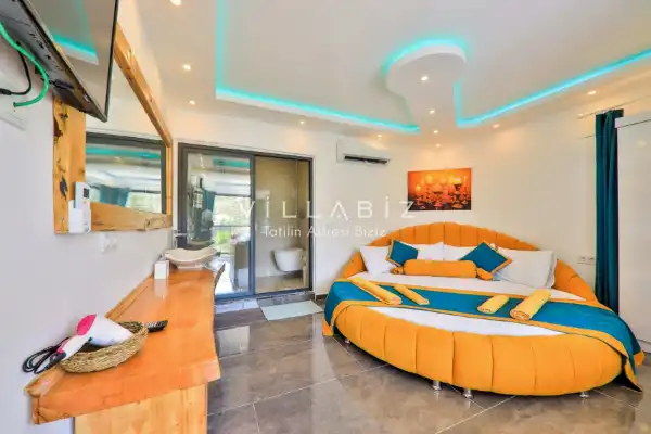 Villamız Antalya'nın en sakin ve Akdeniz koylarının masmavi büyüleyiciliğine sahip bölgesi Kalkan'ın Patara mevkiinde yer almaktadır. Etrafını saran çam ve sedir ormanlarının, kusursuz maki iklimiyle birleştiği; sonunun hep sonsuz maviliklere eriştiği konumuyla kusursuz bir tatil isteyen balayı çiftlerimizin her anını özel ve unutulmaz kılmaktadır. Patara plajı, Kaputaş Plajı, Saklıkent Kanyonu, Gizlikent Şelalesi gibi turistik alanlara yakınlığıyla da trafiğe takılmadan etrafı keşfedecekleri bir tatil imkanı sunmaktadır.