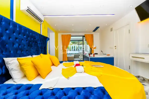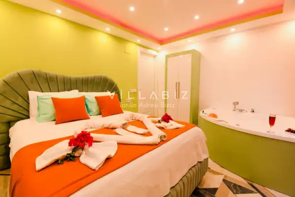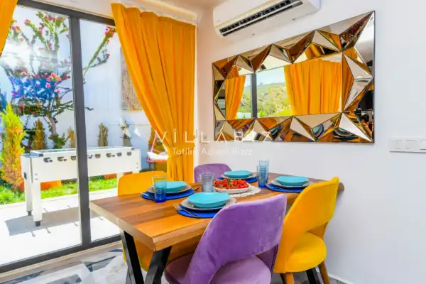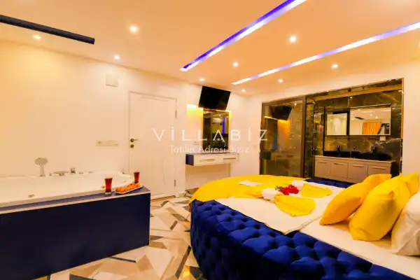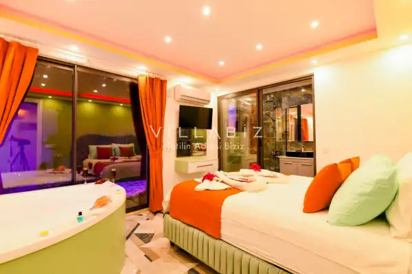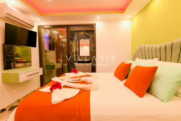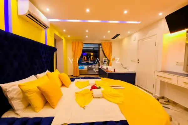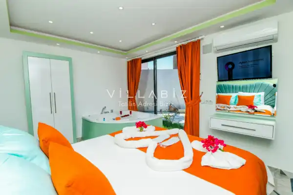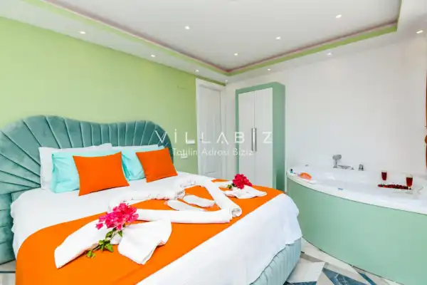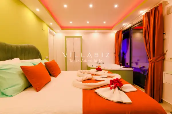 Villamız Antalya'nın en sakin ve Akdeniz koylarının masmavi büyüleyiciliğine sahip bölgesi Kalkan'ın Patara mevkiinde yer almaktadır. Etrafını saran çam ve sedir ormanlarının, kusursuz maki iklimiyle birleştiği; sonunun hep sonsuz maviliklere eriştiği konumuyla kusursuz bir tatil isteyen balayı çiftlerimizin her anını özel ve unutulmaz kılmaktadır. Patara plajı, Kaputaş Plajı, Saklıkent Kanyonu, Gizlikent Şelalesi gibi turistik alanlara yakınlığıyla da trafiğe takılmadan etrafı keşfedecekleri bir tatil imkanı sunmaktadır.