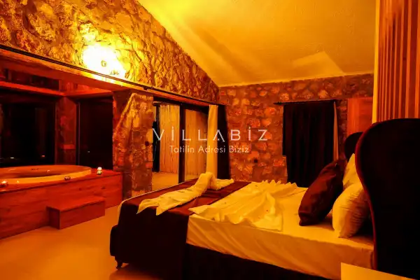 Muhteşem bir deniz manzarasına sahip olan villamız havuz terasının korunaklı yapısından dolayı ve balayı çiftleri için oldukça idealdir. Sevdiklerinizle birlikte günbatımına karşı içeceklerinizi yudumlayıp manzaranın tadını çıkarabilirsiniz. Villamızda bulunan jakuzi ise rahatlayıp tüm yılın yorgunluğunu üzerinizden atmanıza yardımcı olacaktır.