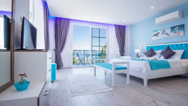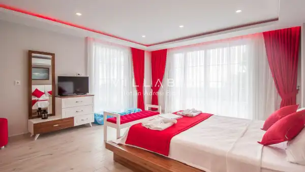 Villamız Antalya'nın en sakin ve Akdeniz koylarının masmavi büyüleyiciliğine sahip bölgesi Kalkan'ın Üzümlü mevkiinde yer almaktadır. Etrafını saran çam ve sedir ormanlarının, kusursuz maki iklimiyle birleştiği; sonunun hep sonsuz maviliklere eriştiği konumuyla kusursuz bir tatil isteyen balayı çiftlerimizin her anını özel ve unutulmaz kılmaktadır. Patara plajı, Kaputaş Plajı, Saklıkent Kanyonu, Gizlikent Şelalesi gibi turistik alanlara yakınlığıyla da trafiğe takılmadan etrafı keşfedecekleri bir tatil imkanı sunmaktadır.