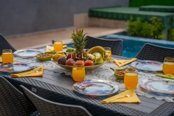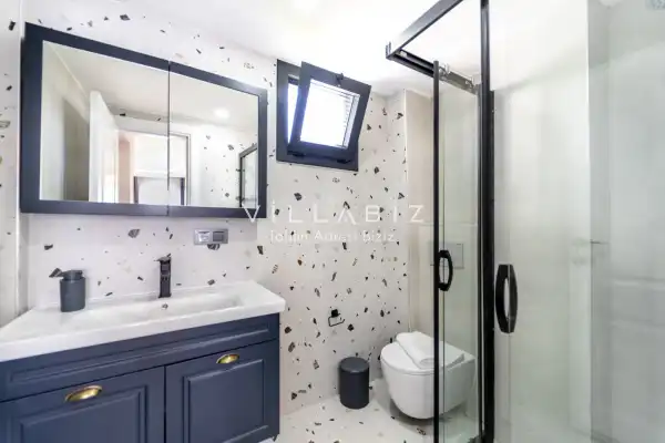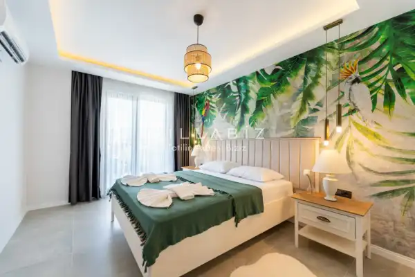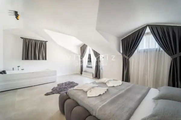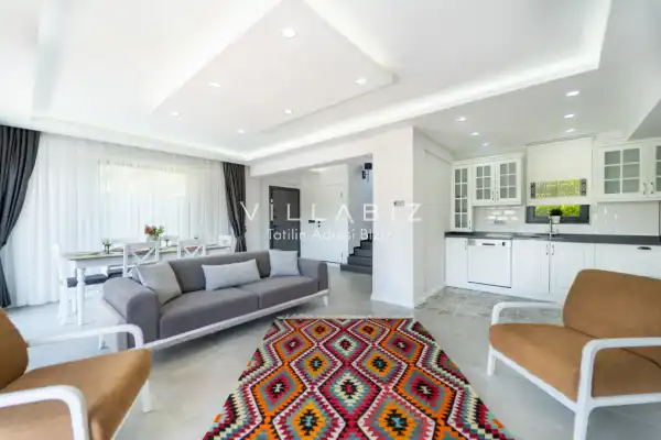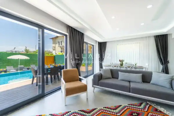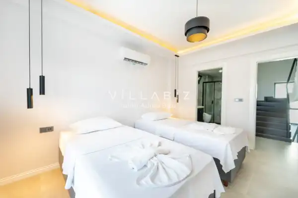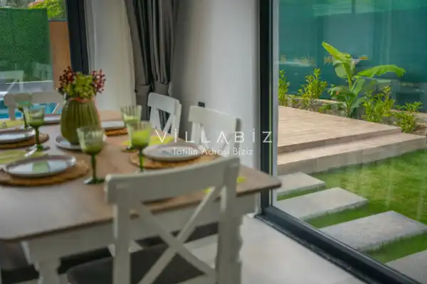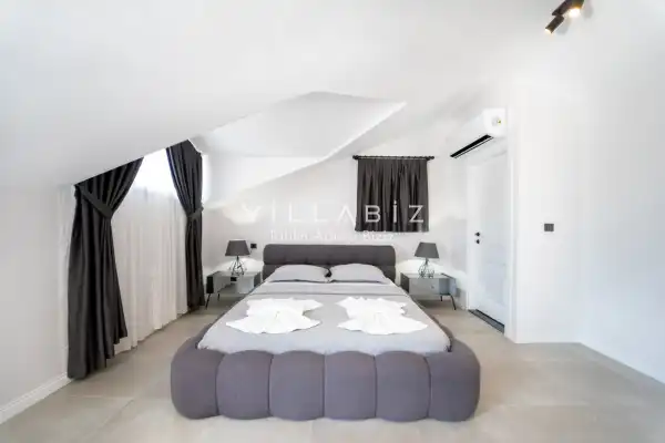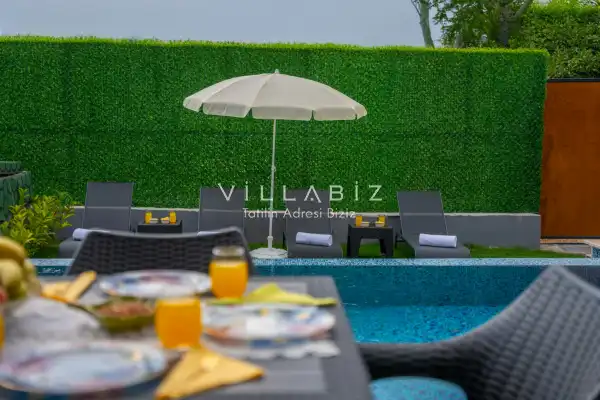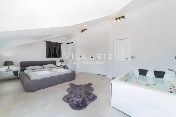 Toplam 3 yatak odasından oluşmuş, 6 kişi konaklama kapasitesine sahiptir. Geniş aileler ve kalabalık arkadaş grupları için oldukça idealdir. Oldukça şık ve modern bir şekilde döşenmiş olan villamızda misafirlerimiz için her şey düşünülmüştür. Havuz terasında bulunan şezlonglarda güneşlenebilir, bahçe masasında muhteşem yemekler yiyebilir, salıncakta sallanıp keyifli dakikalar geçirebilirsiniz.