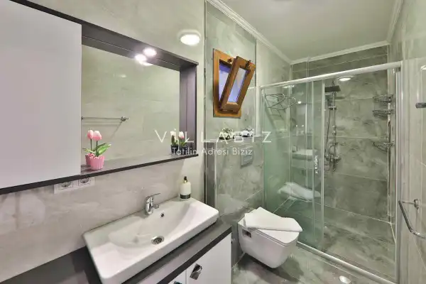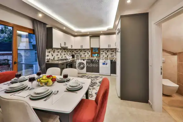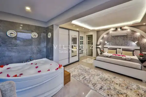 Toplam 3 yatak odasından oluşmuş, 6 kişi konaklama kapasitesine sahiptir. Geniş aileler ve kalabalık arkadaş grupları için oldukça idealdir. Oldukça şık ve modern bir şekilde döşenmiş olan villamızda misafirlerimiz için her şey düşünülmüştür. Havuz terasında bulunan şezlonglarda güneşlenebilir, bahçe masasında muhteşem yemekler yiyebilir,  keyifli dakikalar geçirebilirsiniz.                                                                                                                                                                                                                                                                                                                                              Ekstralar: