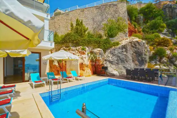 Villamız Antalya’nın en çok tercih edilen tatil bölgesi Kaş/Kalkan mevkiinde yer almaktadır. Masmavi koylara ve muhteşem adalar manzarasına hakim bir noktadadır. Doğa içerisinde, bol oksijenli tertemiz havasıyla konaklayanlarına sağlıklı ve dingin bir tatilin kapılarını aralamaktadır