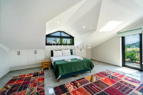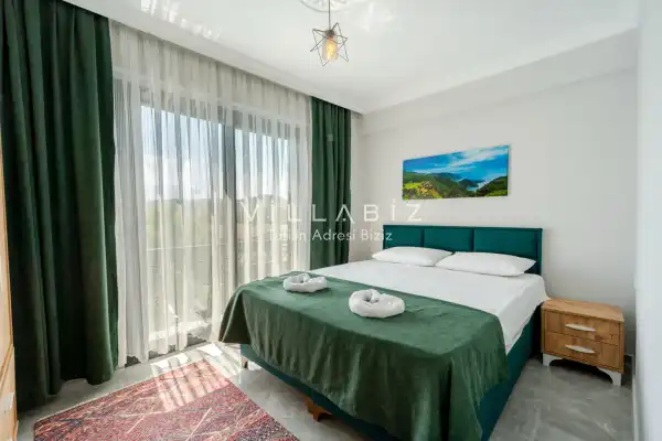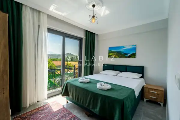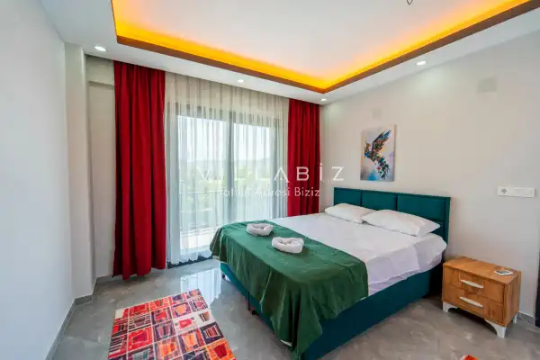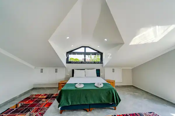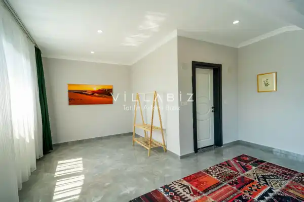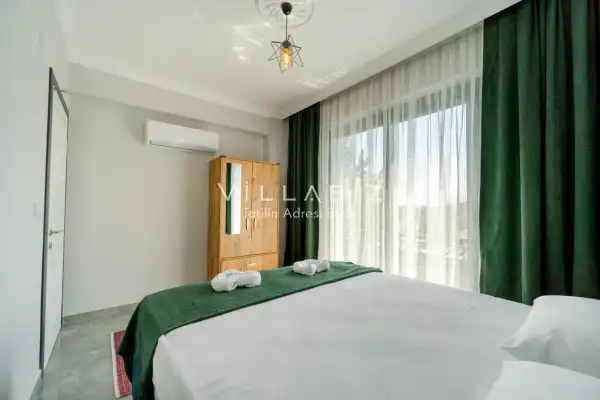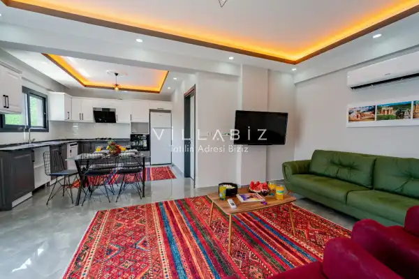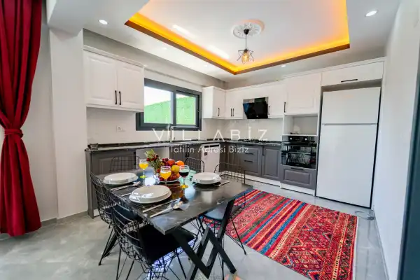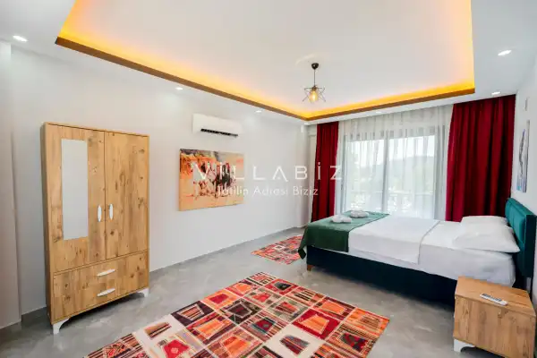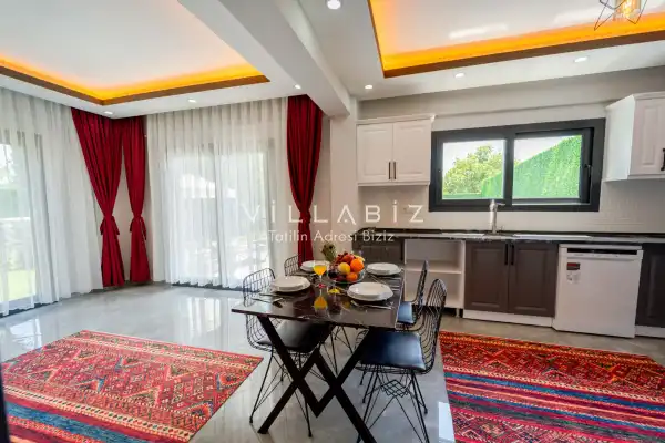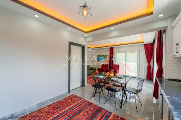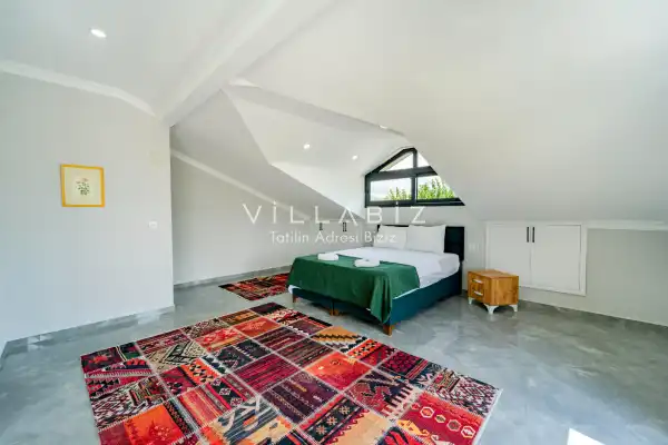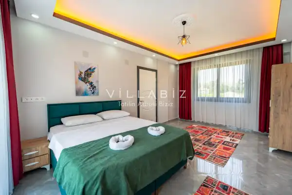 Toplam 3 yatak odasından oluşmuş, 6 kişi konaklama kapasitesine sahiptir. Geniş aileler ve kalabalık arkadaş grupları için oldukça idealdir. Oldukça şık ve modern bir şekilde döşenmiş olan villamızda misafirlerimiz için her şey düşünülmüştür. Havuz terasında bulunan şezlonglarda güneşlenebilir, bahçe masasında muhteşem yemekler yiyebilir, salıncakta sallanıp keyifli dakikalar geçirebilirsiniz.