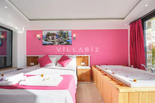 Toplam 1 yatak odasından oluşmuş, 2 kişi konaklama kapasitesine sahiptir. Geniş aileler ve kalabalık arkadaş grupları için oldukça idealdir. Oldukça şık ve modern bir şekilde döşenmiş olan villamızda misafirlerimiz için her şey düşünülmüştür. Havuz terasında bulunan şezlonglarda güneşlenebilir, bahçe masasında muhteşem yemekler yiyebilir, salıncakta sallanıp keyifli dakikalar geçirebilirsiniz.