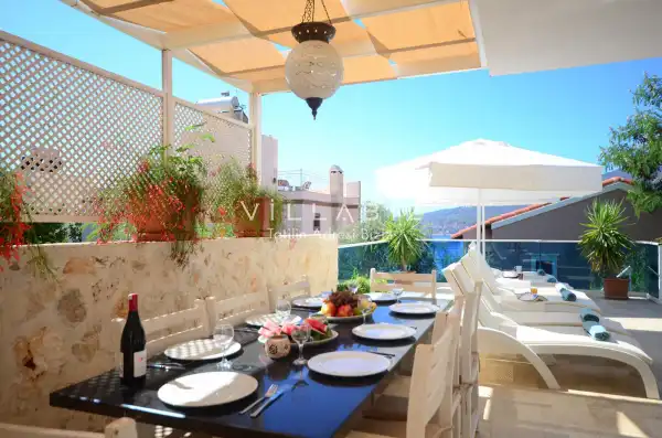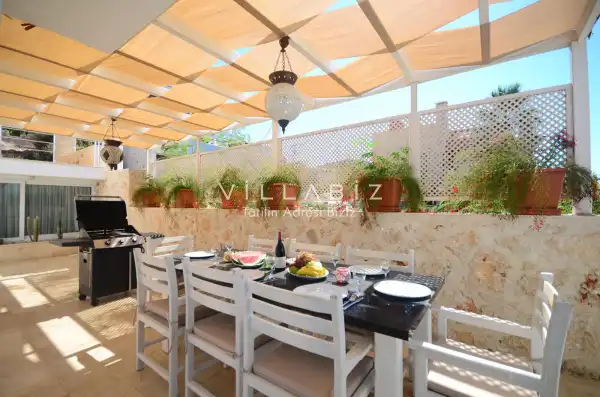 Kalkan'da muhteşem deniz manzarasına sahip villamız, Villa Rüzgar Agre 8 kişilik kapasiteye sahip villada 4 yatak odası yer alıyor. Villanın birer banyosu ve jakuzisi mevcut. Açık mutfağı ve kendine ait bahçesinde bir havuzu var. Mutfağında bulaşık makinesi, buzdolabı, ankastre fırın, tost makinesi ve mutfakta ihtiyaç olan hemen hemen bütün gereçler bulunuyor. Barbekü, masa, sandalyeler, şezlonglar ve şemsiyeler bahçe keyfini sınırsız yaşamanıza imkan tanıyor. Salonunda oturma grubu, televizyon, eşyalar bulunurken, tüm odalar için ayrı klima imkanı var.Villa Rüzgar Age 8 kişilik kapasiteye sahip villada 4 yatak odası yer alıyor. Villanın birer banyosu ve jakuzisi mevcut. Açık mutfağı ve kendine ait bahçesinde bir havuzu var. Mutfağında bulaşık makinesi, buzdolabı, ankastre fırın, tost makinesi ve mutfakta ihtiyaç olan hemen hemen bütün gereçler bulunuyor. Barbekü, masa, sandalyeler, şezlonglar ve şemsiyeler bahçe keyfini sınırsız yaşamanıza imkan tanıyor. Salonunda oturma grubu, televizyon, eşyalar bulunurken, tüm odalar için ayrı klima imkanı var.