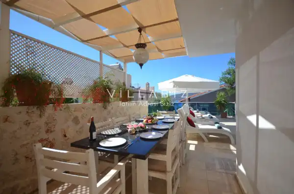 Muhteşem bir deniz manzarasına sahip olan villamız havuz terasının korunaklı yapısından dolayı ve balayı çiftleri için oldukça idealdir. Sevdiklerinizle birlikte günbatımına karşı içeceklerinizi yudumlayıp manzaranın tadını çıkarabilirsiniz. Villamızda bulunan jakuzi ise rahatlayıp tüm yılın yorgunluğunu üzerinizden atmanıza yardımcı olacaktır.