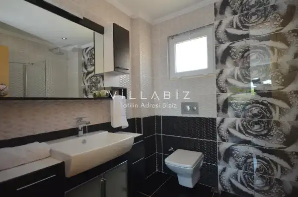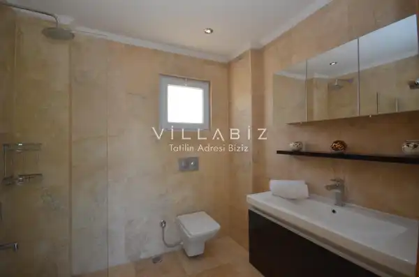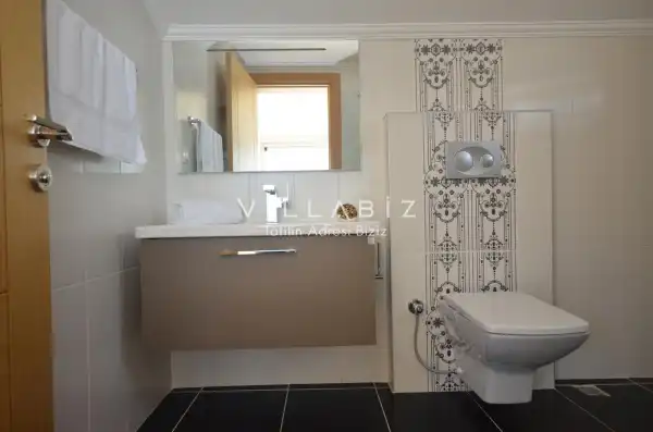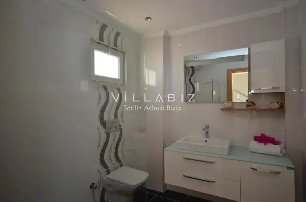 NOT: Villa Rüzgar'da bir yatak odası anabina dışında müştemilat şeklindedir. Konfor olarak ana binada olan yatak odalarından eksiği yoktur. İçerisinde banyo wc vardır ve 2 adet single yatak bu odadadır.