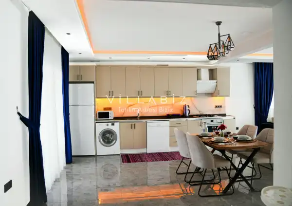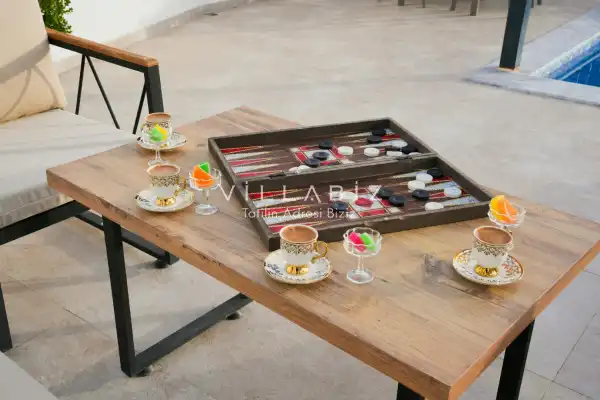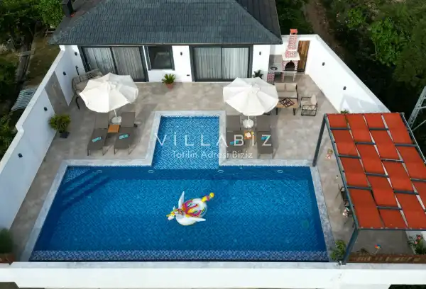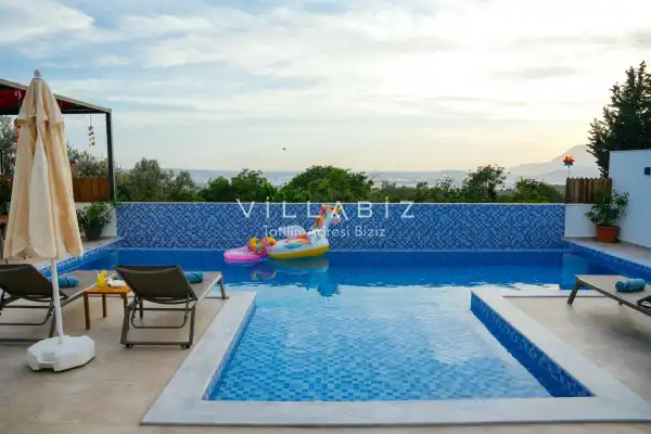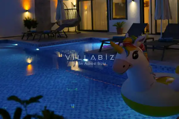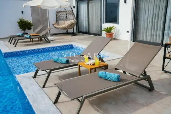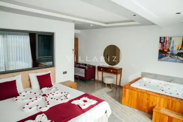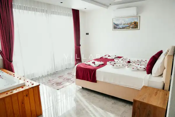 Villa 2 yatak odalı olup 4 kişilik konaklama kapasitesine sahiptir. 1. Yatak odasında konforlu bir çift kişilik yatak, klima, elbise dolabı ve jakuzi ve ebeveyn banyosu bulunmaktadır. 2. Yatak odasında konforlu iki tek kişilik yatak, klima, elbise dolabı ve ebeveyn banyosu bulunmaktadır. Salon bölümünde modern oturma grubu, televizyon, klima ve açık plan tam donanımlı mutfak yer almaktadır. Mutfakta buzdolabı, ocak, fırın, yemek takımları ve temel mutfak ekipmanları eksiksiz şekilde sunulmaktadır.
