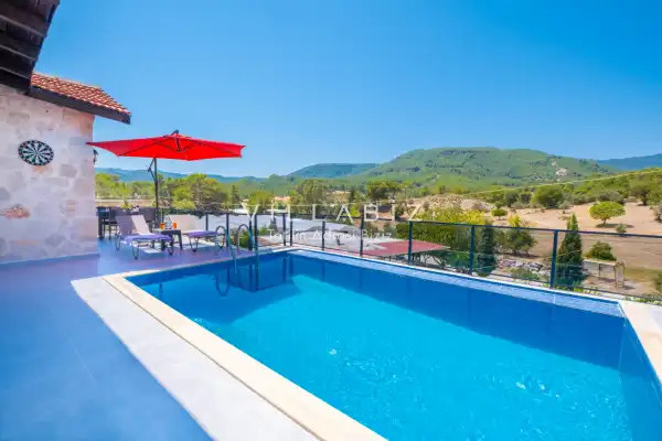 Villamız Antalya’nın en çok tercih edilen tatil bölgesi Kaş Uğrar mevkiinde yer almaktadır. Masmavi koylara ve muhteşem adalar manzarasına hakim bir noktadadır. Doğa içerisinde, bol oksijenli tertemiz havasıyla konaklayanlarına sağlıklı ve dingin bir tatilin kapılarını aralamaktadır