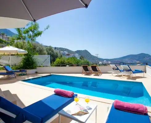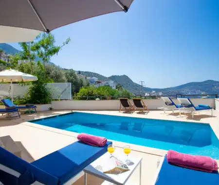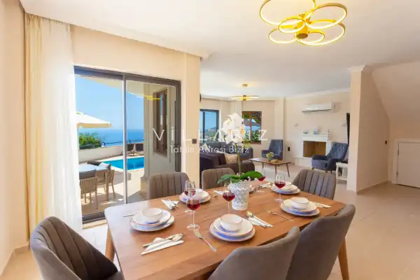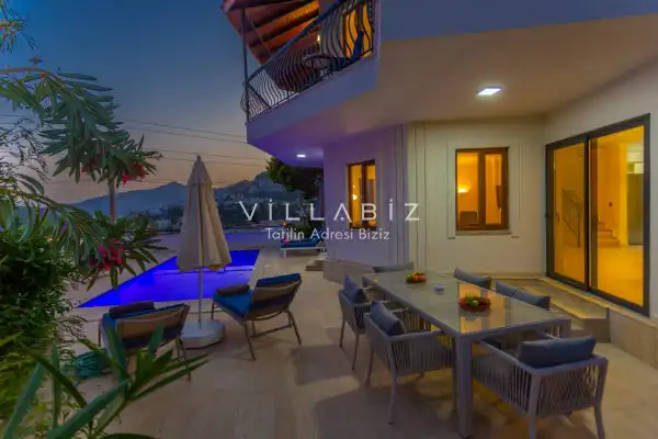 Villamız Antalya’nın en çok tercih edilen tatil bölgesi Kaş/Kalkan mevkiinde yer almaktadır. Masmavi koylara ve muhteşem adalar manzarasına hakim bir noktadadır. Doğa içerisinde, bol oksijenli tertemiz havasıyla konaklayanlarına sağlıklı ve dingin bir tatilin kapılarını aralamaktadır