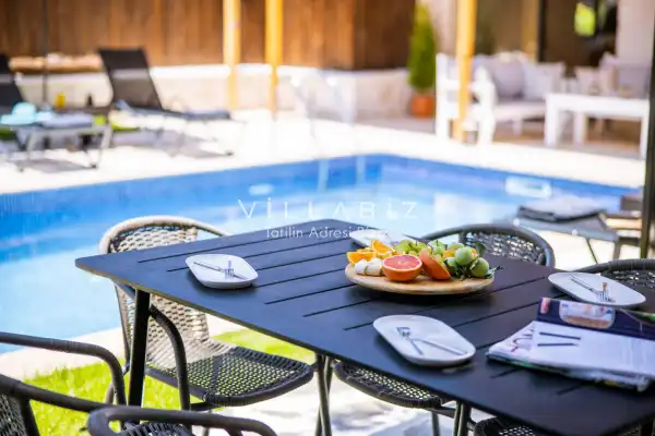Villa temiz bir şekilde misafirlere teslim edilmekte ve iki haftalık konaklamalarda birinci haftanın sonunda temizlik yapılmaktadır.