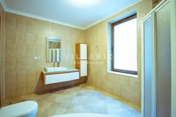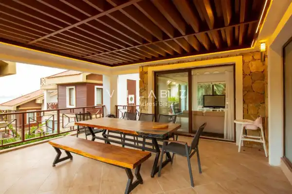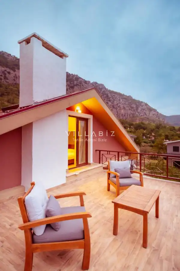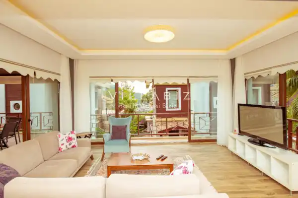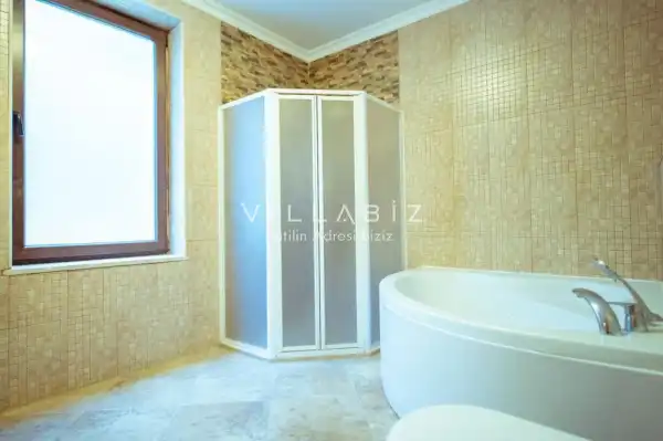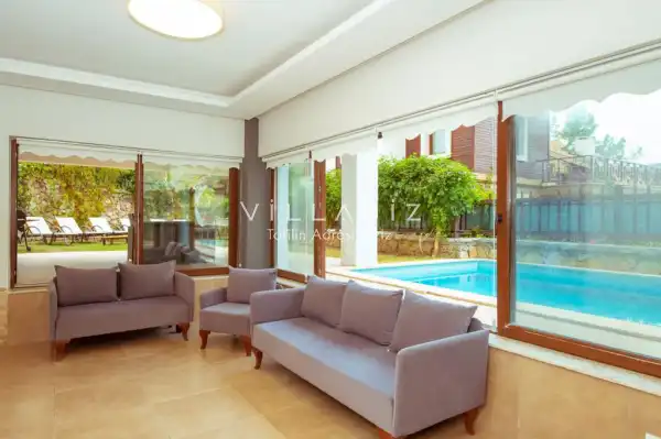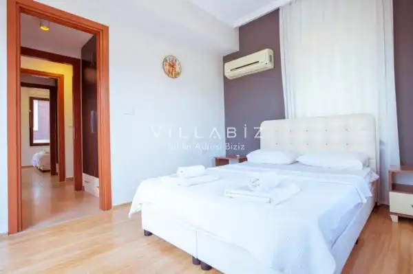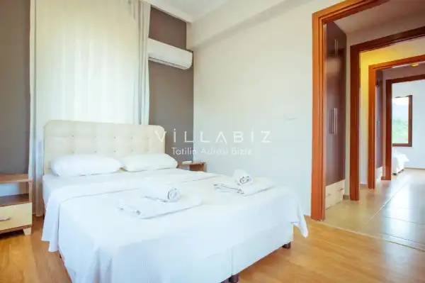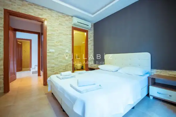 Toplam 4 yatak odasından oluşmuş,10 kişi konaklama kapasitesine sahiptir. Geniş aileler ve kalabalık arkadaş grupları için oldukça idealdir. Oldukça şık ve modern bir şekilde döşenmiş olan villamızda misafirlerimiz için her şey düşünülmüştür. Havuz terasında bulunan şezlonglarda güneşlenebilir, bahçe masasında muhteşem yemekler yiyebilir, salıncakta sallanıp keyifli dakikalar geçirebilirsiniz.