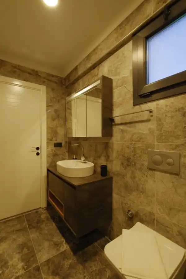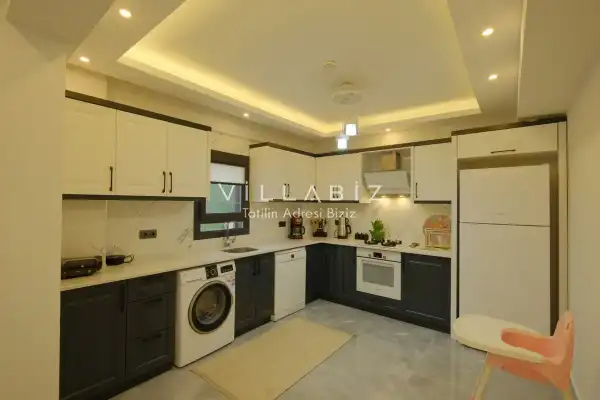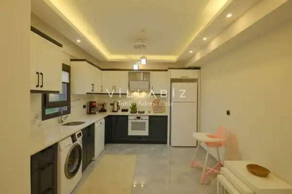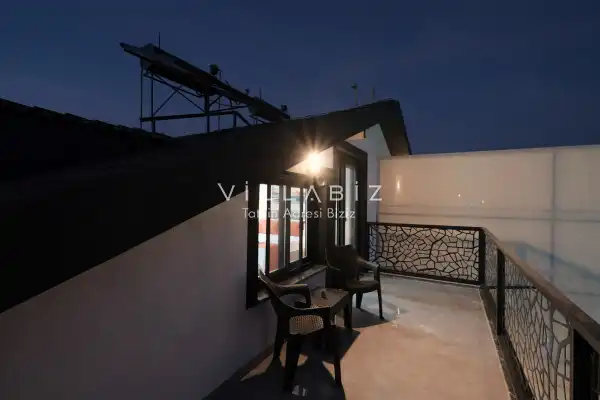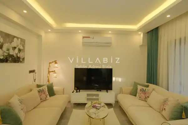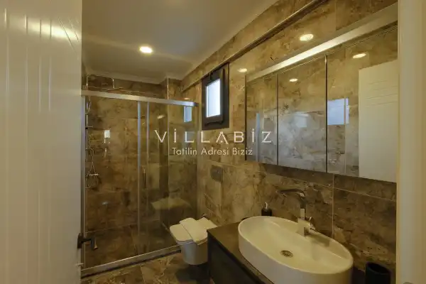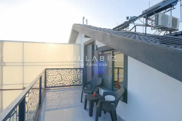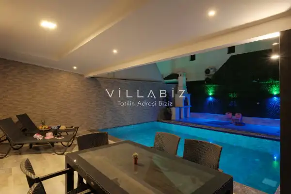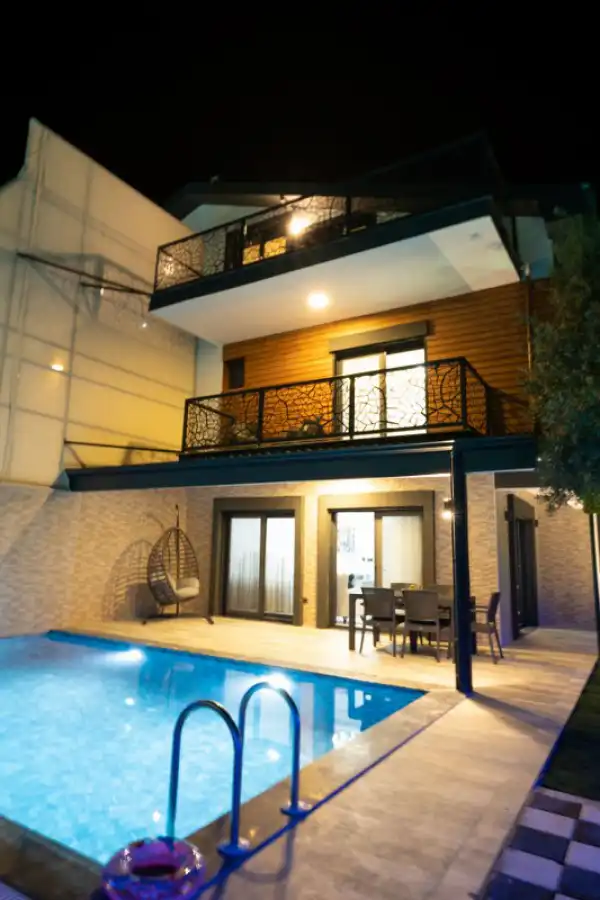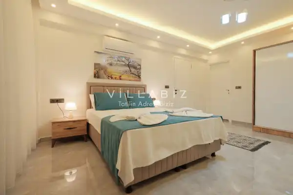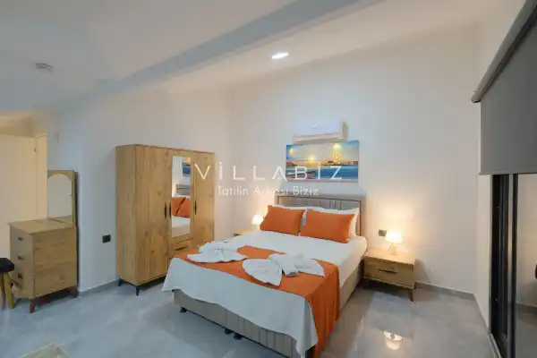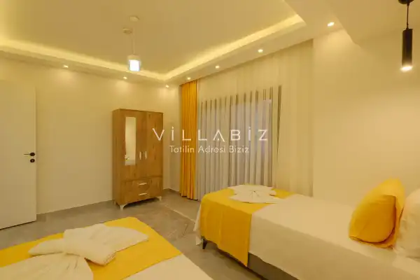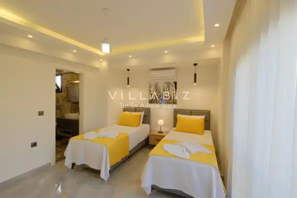 Toplam 3 yatak odasından oluşmuş, 6 kişi konaklama kapasitesine sahiptir. Geniş aileler ve kalabalık arkadaş grupları için oldukça idealdir. Oldukça şık ve modern bir şekilde döşenmiş olan villamızda misafirlerimiz için her şey düşünülmüştür. Havuz terasında bulunan şezlonglarda güneşlenebilir, bahçe masasında muhteşem yemekler yiyebilir, salıncakta sallanıp keyifli dakikalar geçirebilirsiniz.