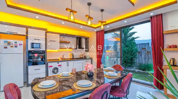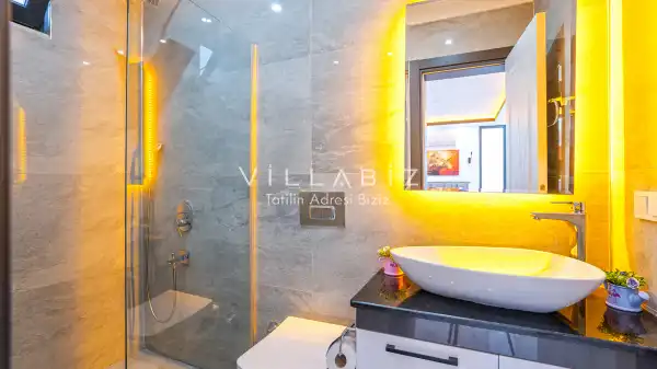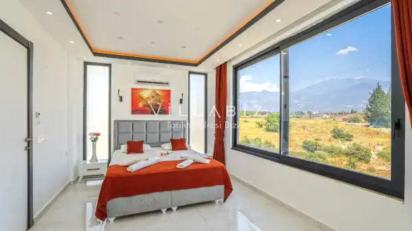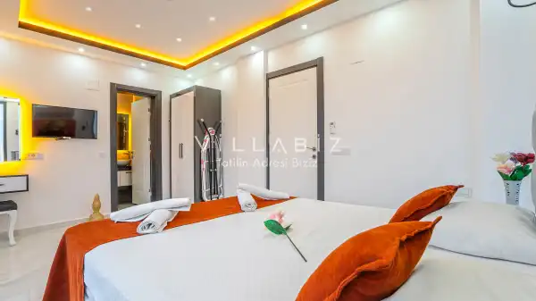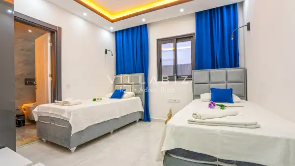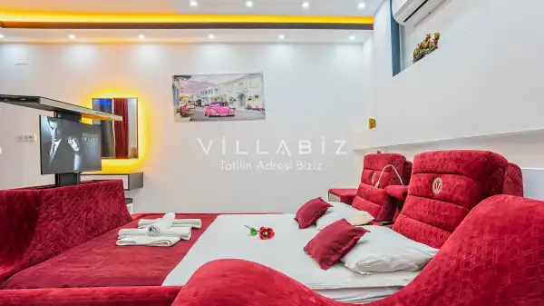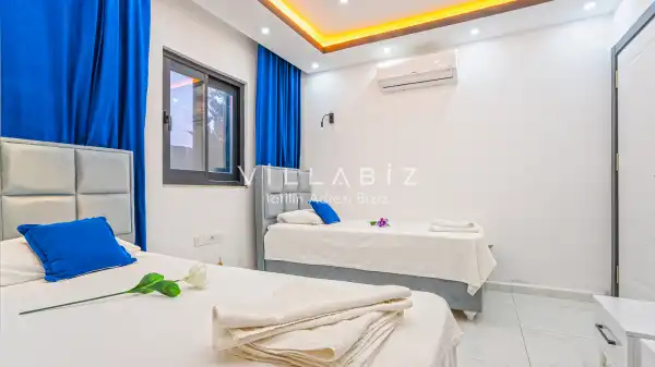 Toplam 3 yatak odasından oluşmuş, 6 kişi konaklama kapasitesine sahiptir. Geniş aileler ve kalabalık arkadaş grupları için oldukça idealdir. Oldukça şık ve modern bir şekilde döşenmiş olan villamızda misafirlerimiz için her şey düşünülmüştür. Havuz terasında bulunan şezlonglarda güneşlenebilir, bahçe masasında muhteşem yemekler yiyebilir, salıncakta sallanıp keyifli dakikalar geçirebilirsiniz.