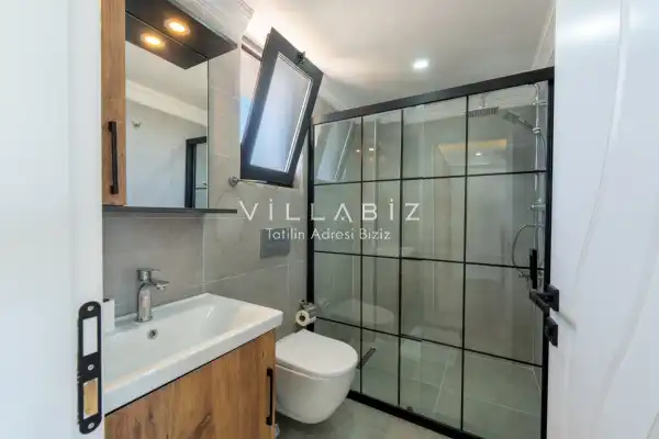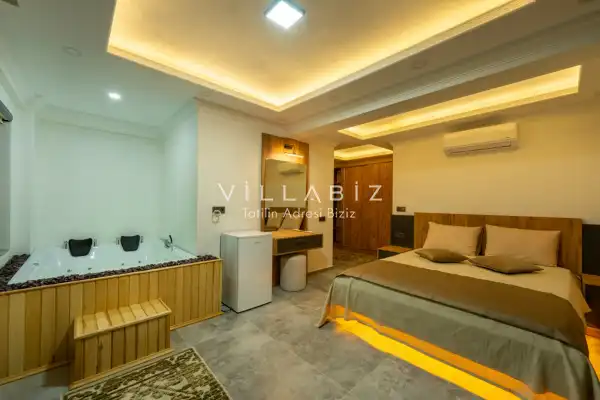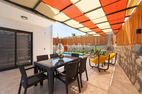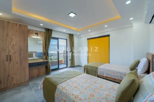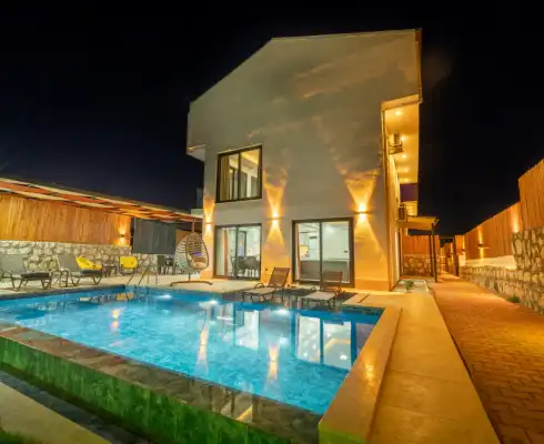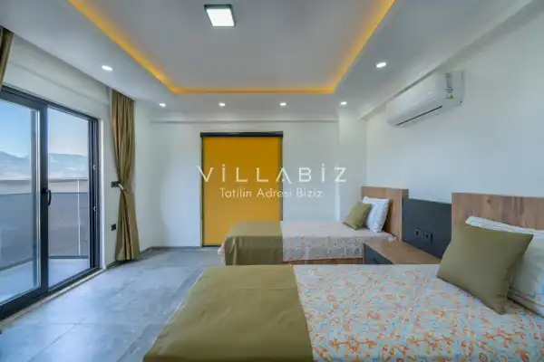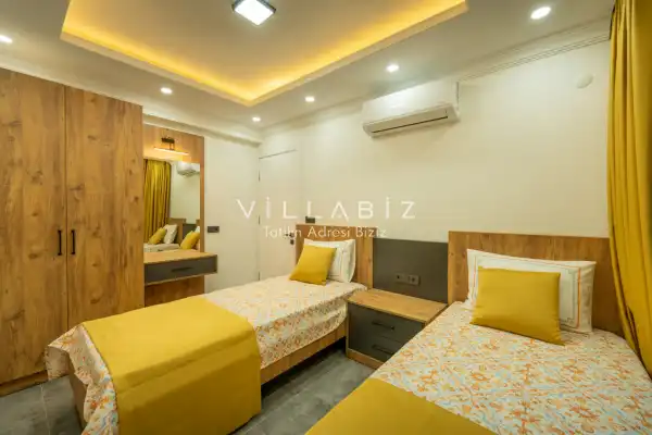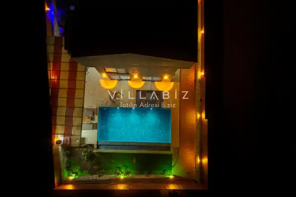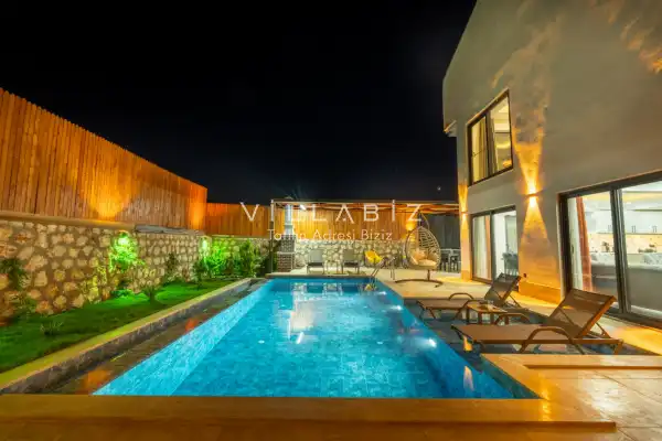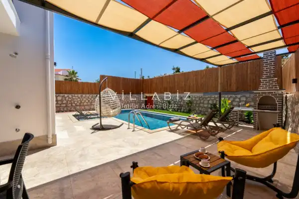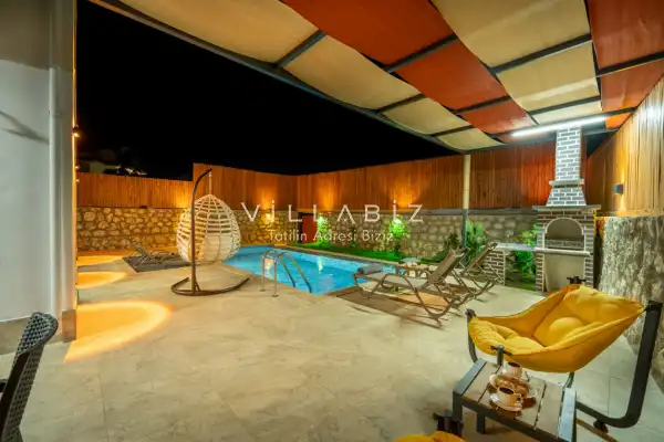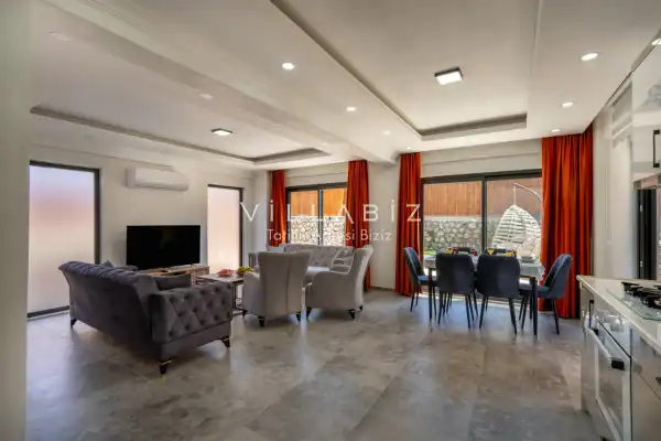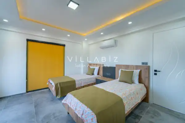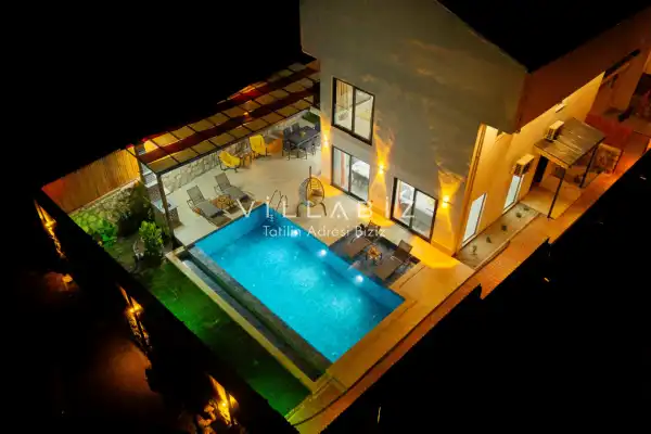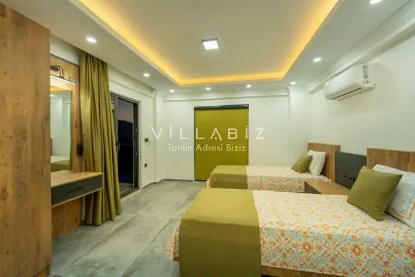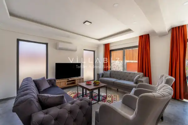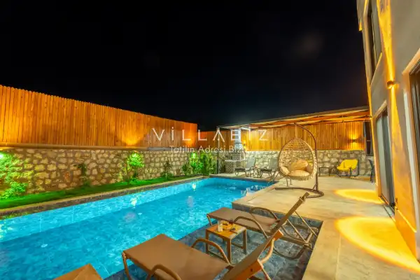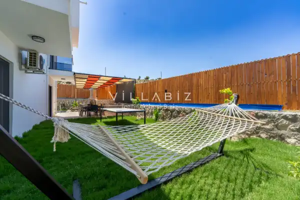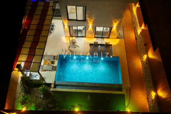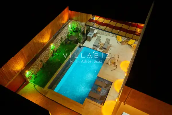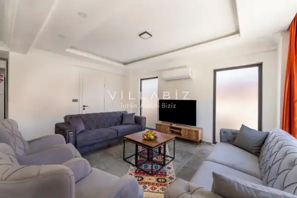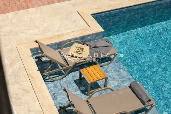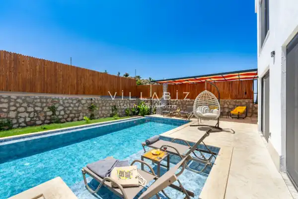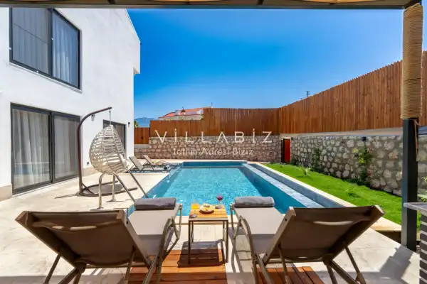 Toplam 3 yatak odasından oluşmuş, 6 kişi konaklama kapasitesine sahiptir. Geniş aileler ve kalabalık arkadaş grupları için oldukça idealdir. Oldukça şık ve modern bir şekilde döşenmiş olan villamızda misafirlerimiz için her şey düşünülmüştür. Havuz terasında bulunan şezlonglarda güneşlenebilir, bahçe masasında muhteşem yemekler yiyebilir, salıncakta sallanıp keyifli dakikalar geçirebilirsiniz.
