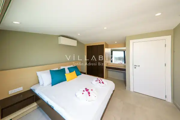 Toplam 3 yatak odasından oluşmuş, 6 kişi konaklama kapasitesine sahiptir. Oldukça şık ve modern bir şekilde döşenmiş olan villamızda misafirlerimiz için herşey düşünülmüştür. Havuz terasında bulunan şezlonglarda güneşlenebilir, bahçe masasında muhteşem yemekler yiyebilir, salıncakta sallanıp keyifli dakikalar geçirebilirsiniz. Villamızın spor salonu ve oyun odası da bulunmaktadır. Ayrıca villamızın özel yüzme havuzu ısıtma sistemine sahiptir.