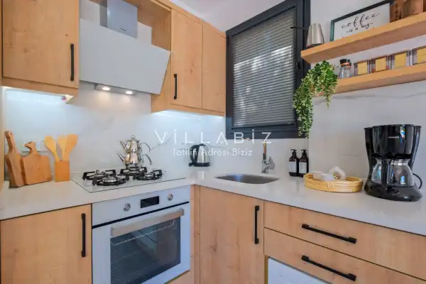 Toplam 1 yatak odasından oluşmuş, 2 kişi konaklama kapasitesine sahiptir. Balayı çiftleri için oldukça idealdir. Oldukça şık ve modern bir şekilde döşenmiş olan villamızda misafirlerimiz için her şey düşünülmüştür. Havuz terasında bulunan şezlonglarda güneşlenebilir, bahçe masasında muhteşem yemekler yiyebilir, salıncakta sallanıp keyifli dakikalar geçirebilirsiniz.