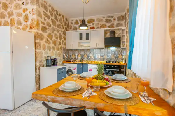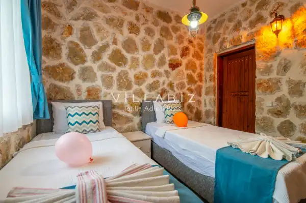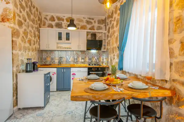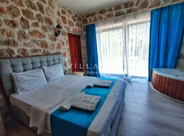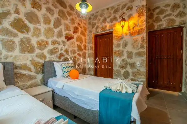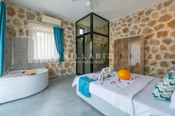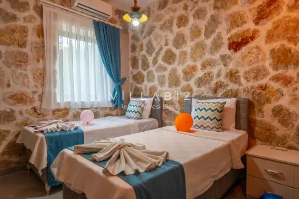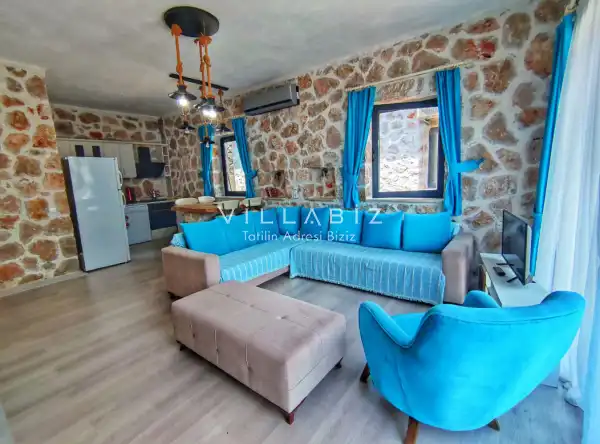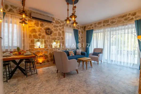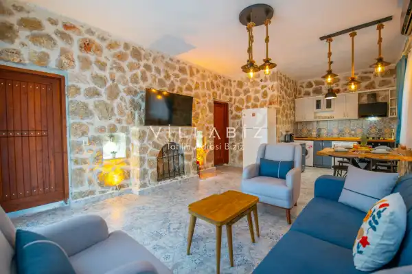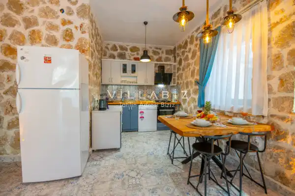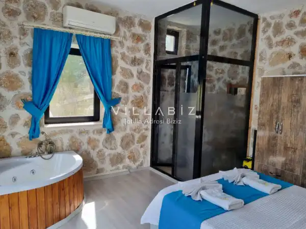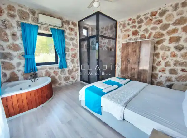 Villa Stone House 1, 4 kişilik kapasiteye sahip villada 2 yatak odası yer alıyor. Villanın 2 banyosu ve 1 jakuzisi mevcuttur. Açık mutfağı ve kendine ait olması bir odası var. Mutfağında bulaşık makinesi, buzdolabı, ankastre fırın, tost makinesi ve mutfakta ihtiyaç olan hemen hemen bütün gereçler bulunuyor. Villanın odaları özel odası mevcut. Barbekü, masa, sandalyeler, salonlar ve şemsiyeler bahçe keyfini sınırsız yaşamanıza imkan tanıyor. Salonunda oturma grubu, televizyon, eşyalar bulunurken, tüm odalar için ayrı klima imkanı var.
