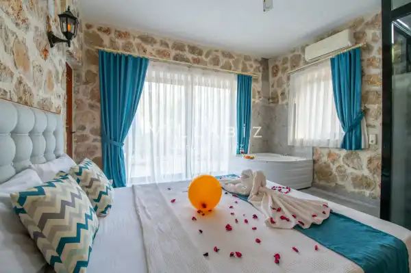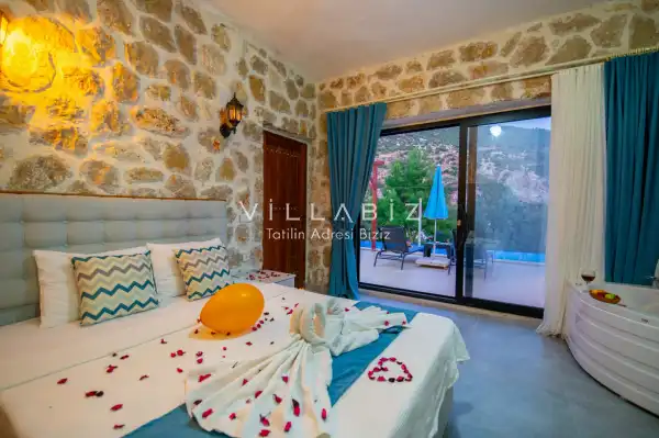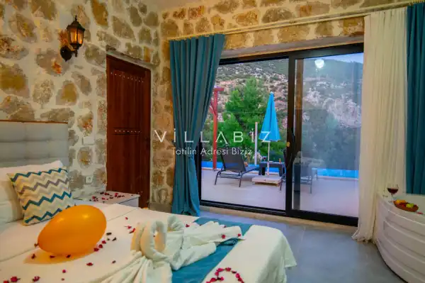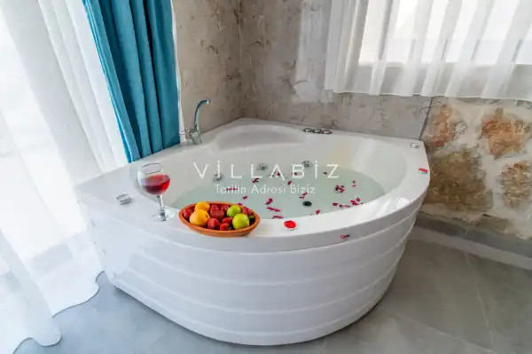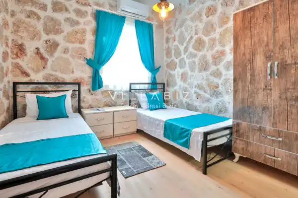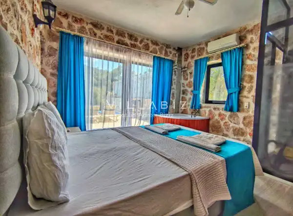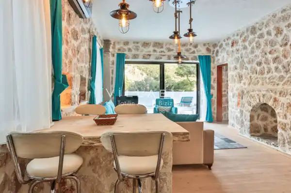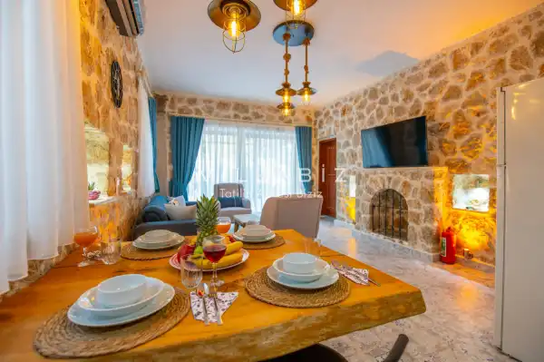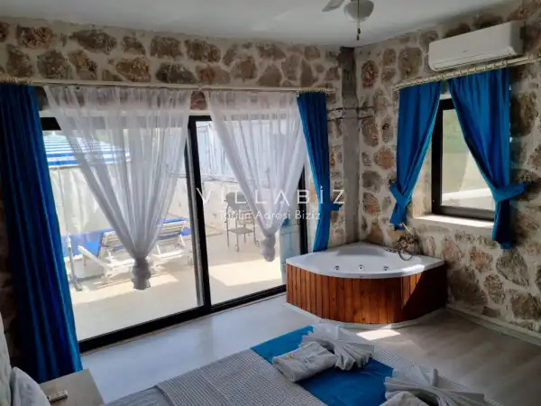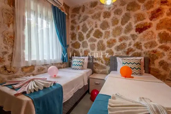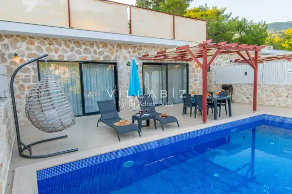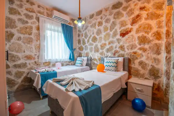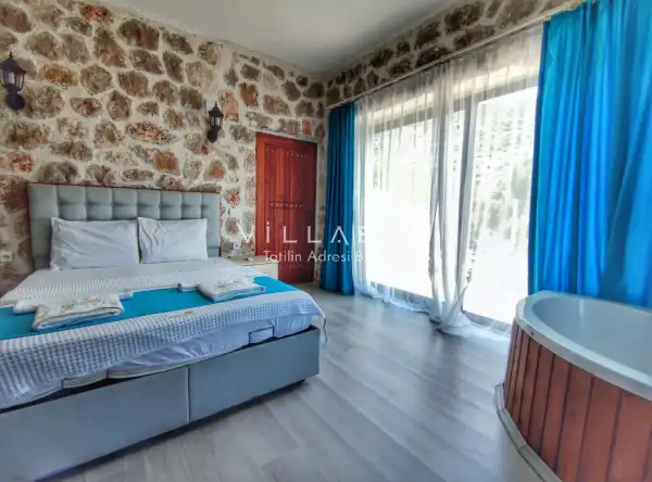 Villa Stone House 1, 4 kişilik kapasiteye sahip villada 2 yatak odası yer alıyor. Villanın 2 banyosu ve 1 jakuzisi mevcuttur. Açık mutfağı ve kendine ait olması bir odası var. Mutfağında bulaşık makinesi, buzdolabı, ankastre fırın, tost makinesi ve mutfakta ihtiyaç olan hemen hemen bütün gereçler bulunuyor. Villanın odaları özel odası mevcut. Barbekü, masa, sandalyeler, salonlar ve şemsiyeler bahçe keyfini sınırsız yaşamanıza imkan tanıyor. Salonunda oturma grubu, televizyon, eşyalar bulunurken, tüm odalar için ayrı klima imkanı var.
