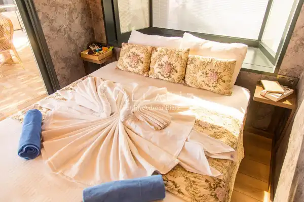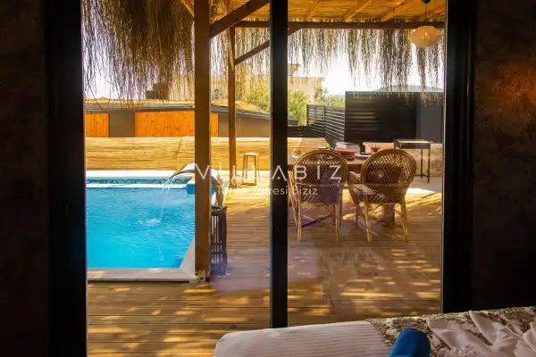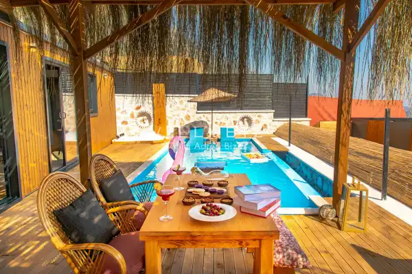 Muhteşem bir deniz manzarasına sahip olan villamız havuz terasının korunaklı yapısından dolayı ve balayı çiftleri için oldukça idealdir. Sevdiklerinizle birlikte günbatımına karşı içeceklerinizi yudumlayıp manzaranın tadını çıkarabilirsiniz. Villamızda bulunan jakuzi ise rahatlayıp tüm yılın yorgunluğunu üzerinizden atmanıza yardımcı olacaktır.