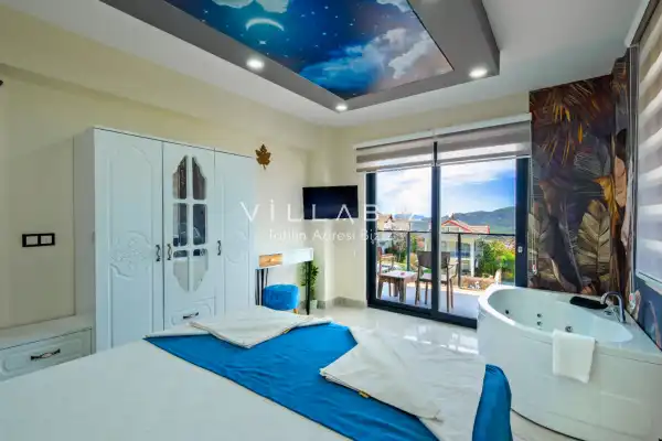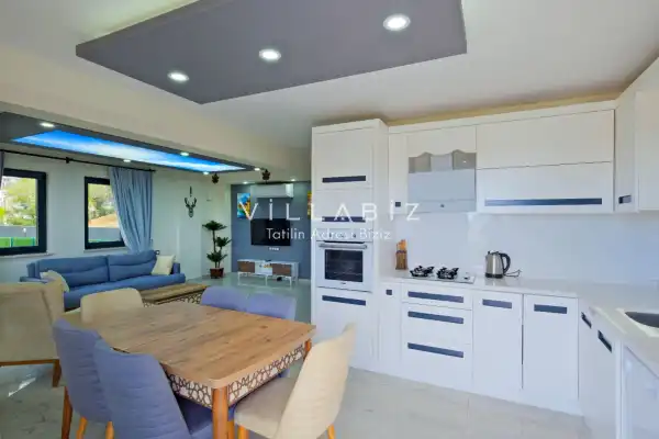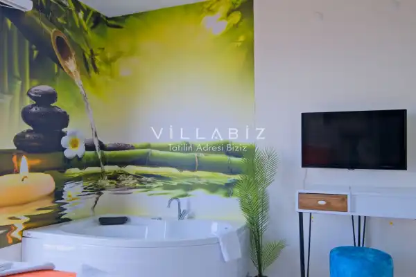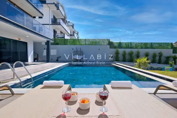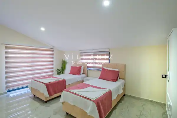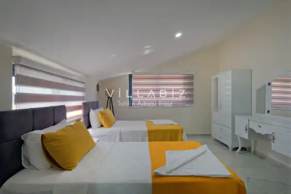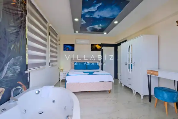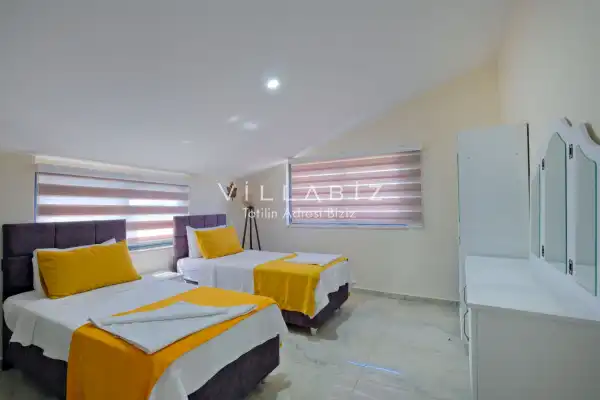 Toplam 4 yatak odasından oluşmuş, 8 kişi konaklama kapasitesine sahiptir. Geniş aileler ve kalabalık arkadaş grupları için oldukça idealdir. Oldukça şık ve modern bir şekilde döşenmiş olan villamızda misafirlerimiz için herşey düşünülmüştür. Havuz terasında bulunan şezlonglarda güneşlenebilir, bahçe masasında muhteşem yemekler yiyebilir, salıncakta sallanıp keyifli dakikalar geçirebilirsiniz.Ayrıca 1. ve 2. yatak odasında yer alan jakuzi özelliği ile yılın tüm yorgunluğunu üstünüzden atabilirsiniz.