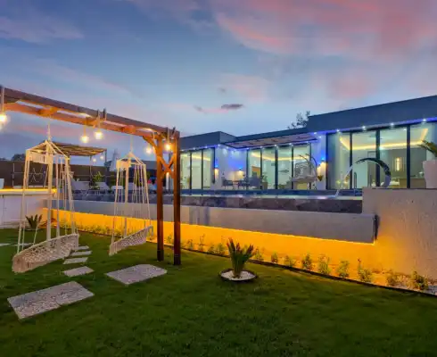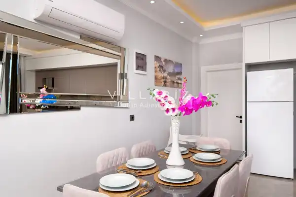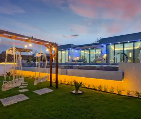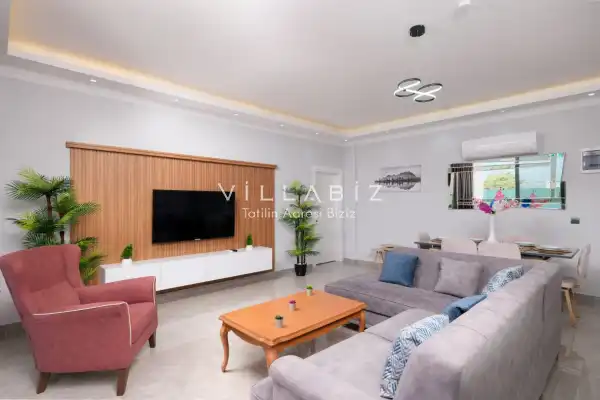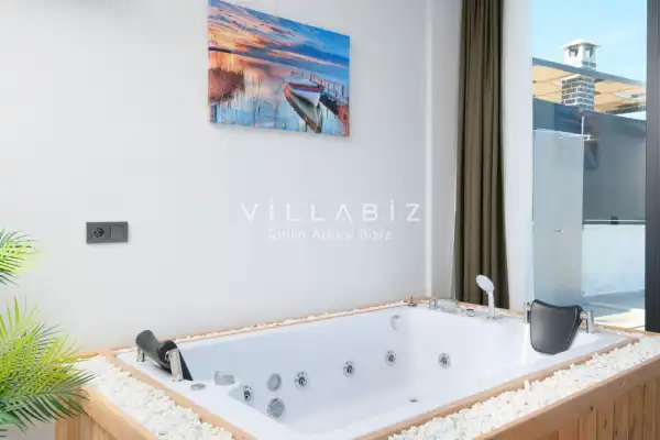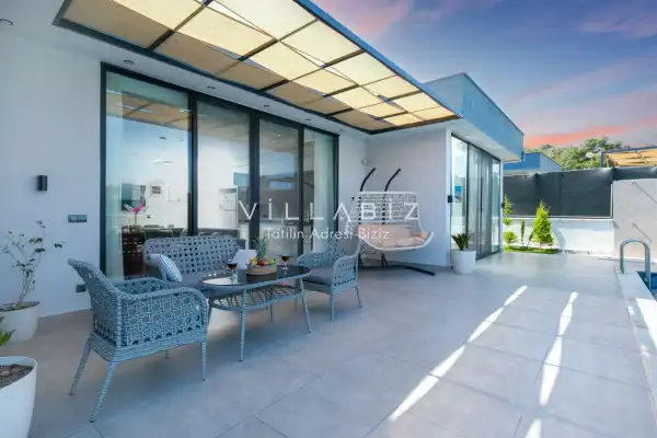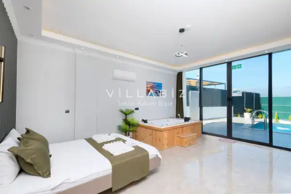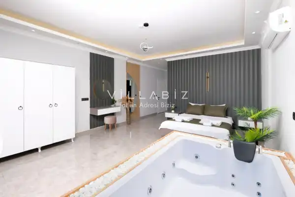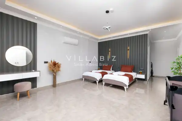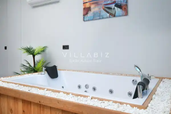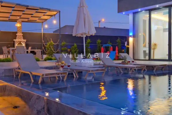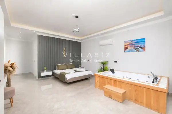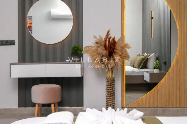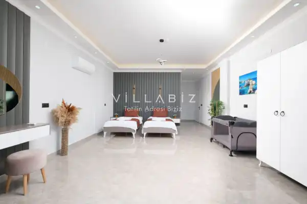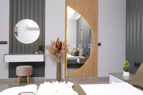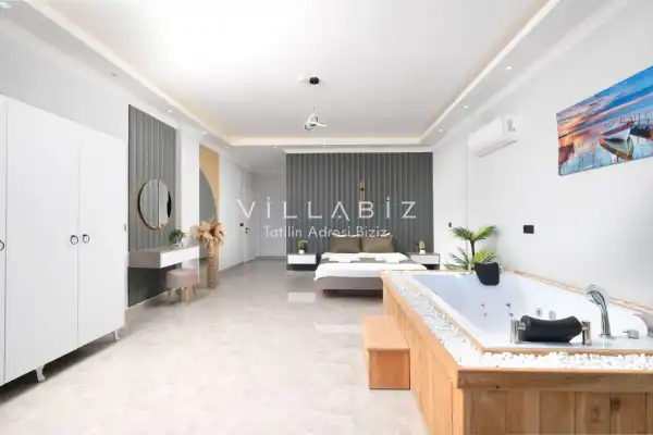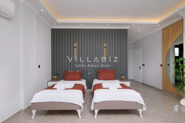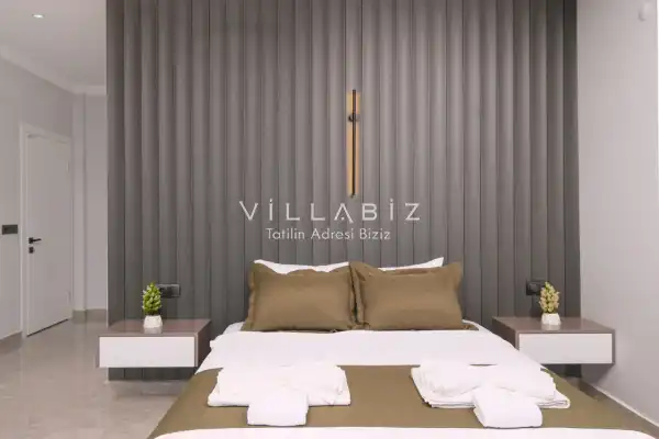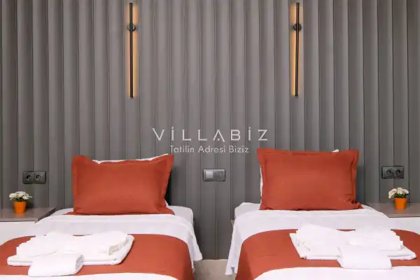 Toplam 2 yatak odasından oluşmuş, 3 kişi konaklama kapasitesine sahiptir. Çekirdek aileler ve arkadaş grupları ve balayı çiftleri için oldukça idealdir. Oldukça şık ve modern bir şekilde döşenmiş olan villamızda misafirlerimiz için her şey düşünülmüştür. Havuz terasında bulunan şezlonglarda güneşlenebilir, bahçe masasında muhteşem yemekler yiyebilir, salıncakta sallanıp keyifli dakikalar geçirebilirsiniz.