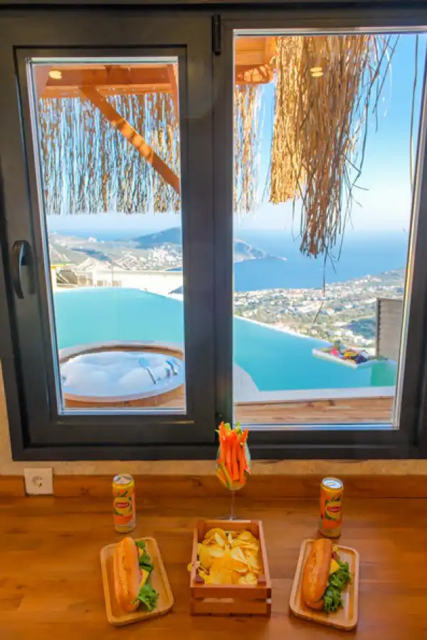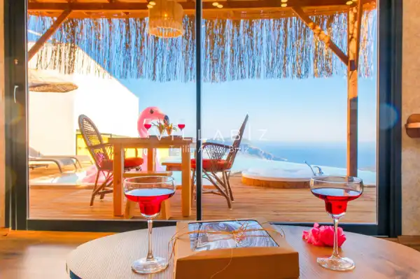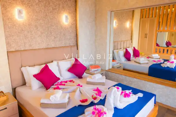 Muhteşem bir deniz manzarasına sahip olan villamız 2 kişi konaklama kapasitesine sahiptir. Sevdiklerinizle birlikte günbatımına karşı içeceklerinizi yudumlayıp manzaranın tadını çıkarabilirsiniz. Aynı zamanda merkeze ve plaja yakın bir konumda yer alan villamız siz değerli misafirlerimize keyifli bir taitl imkanı sunmaktadır.