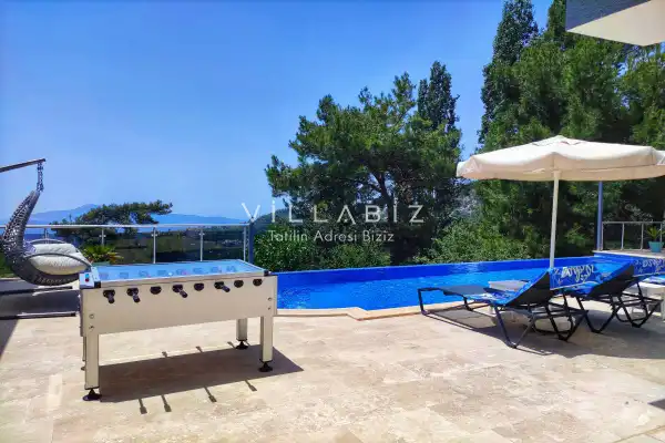 Villa Swiss 4 kişilik kapasiteye sahip villada 2 yatak odası yer alıyor. Villanın birer banyosu ve jakuzisi mevcuttur. Açık mutfağı ve kendine ait olması bir odası var. Mutfağında bulaşık makinesi, buzdolabı, ankastre fırın, tost makinesi ve mutfakta ihtiyaç olan hemen hemen bütün gereçler bulunuyor. Barbekü, masa, sandalyeler, salonlar ve şemsiyeler bahçe keyfini sınırsız yaşamanıza imkan tanıyor. Salonunda oturma grubu, televizyon, eşyalar bulunurken, tüm odalar için ayrı klima imkanı var.