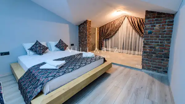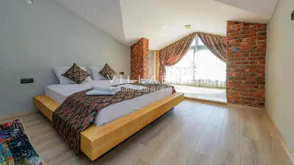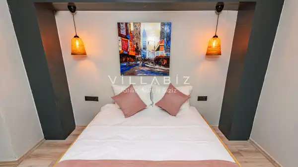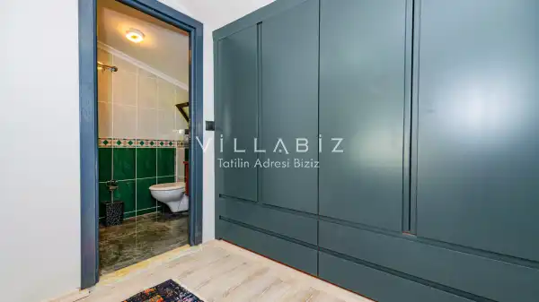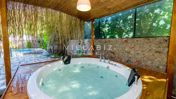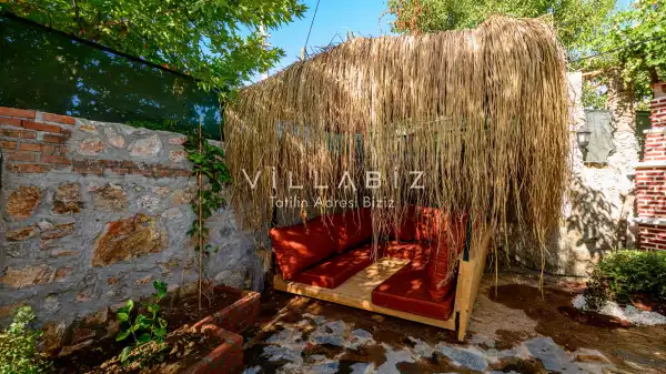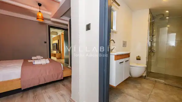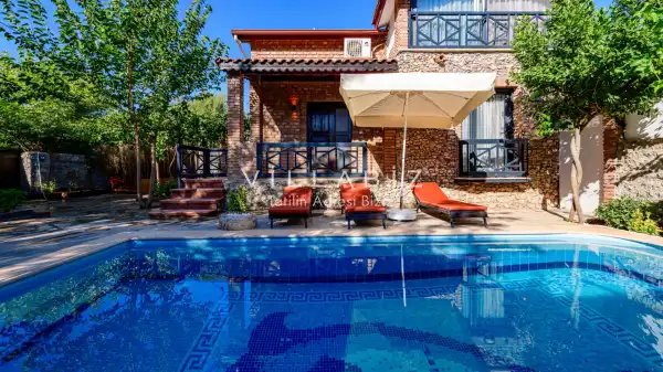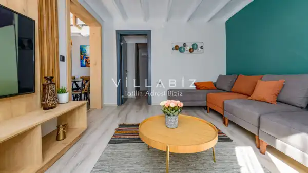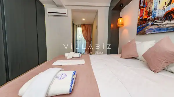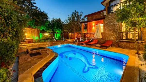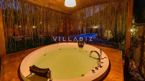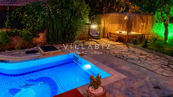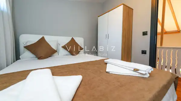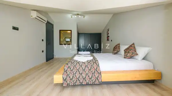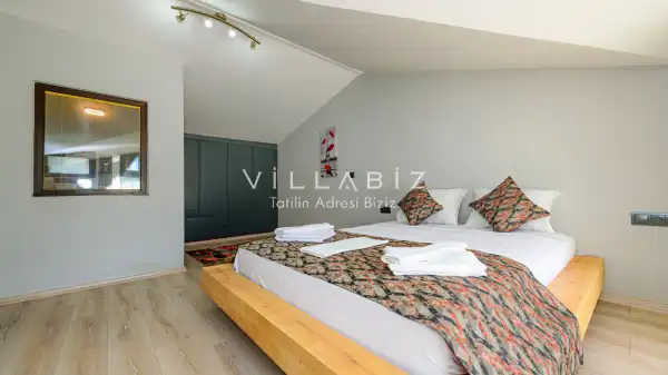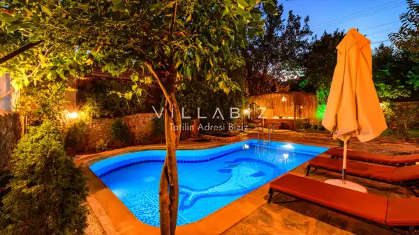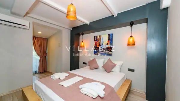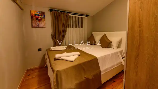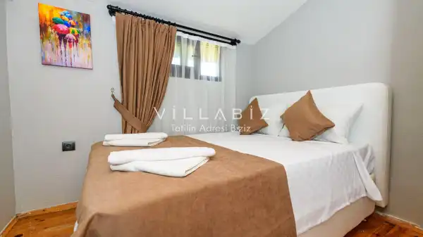 Toplam 3 yatak odasından oluşmuş, 6 kişi konaklama kapasitesine sahiptir. Geniş aileler ve kalabalık arkadaş grupları için oldukça idealdir. Oldukça şık ve modern bir şekilde döşenmiş olan villamızda misafirlerimiz için her şey düşünülmüştür. Havuz terasında bulunan şezlonglarda güneşlenebilir, bahçe masasında muhteşem yemekler yiyebilir, salıncakta sallanıp keyifli dakikalar geçirebilirsiniz.