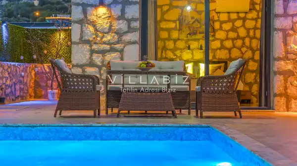 Villamız Antalya’nın en çok tercih edilen tatil bölgesi Kaş/Kalkan mevkiinde yer almaktadır. Masmavi koylara ve muhteşem adalar manzarasına hakim bir noktadadır. Doğa içerisinde, bol oksijenli tertemiz havasıyla konaklayanlarına sağlıklı ve dingin bir tatilin kapılarını aralamaktadır