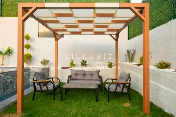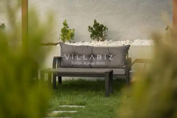 Toplam 4 yatak odasından oluşmuş, 8 kişi konaklama kapasitesine sahiptir. Geniş aileler ve kalabalık arkadaş grupları için oldukça idealdir. Oldukça şık ve modern bir şekilde döşenmiş olan villamızda misafirlerimiz için herşey düşünülmüştür. Havuz terasında bulunan şezlonglarda güneşlenebilir, bahçe masasında muhteşem yemekler yiyebilir, salıncakta sallanıp keyifli dakikalar geçirebilirsiniz.