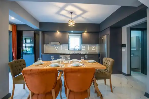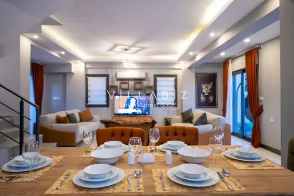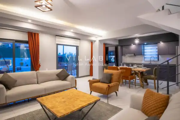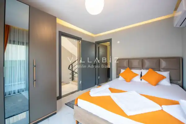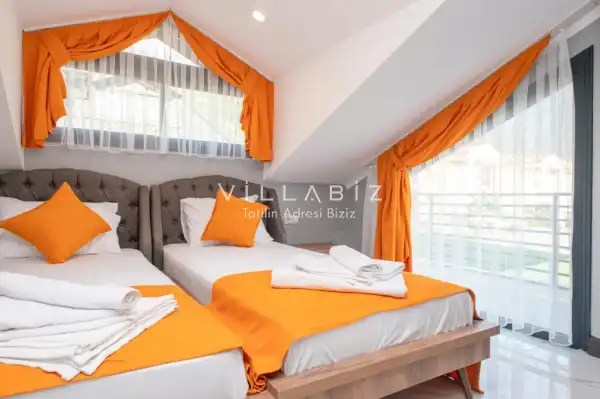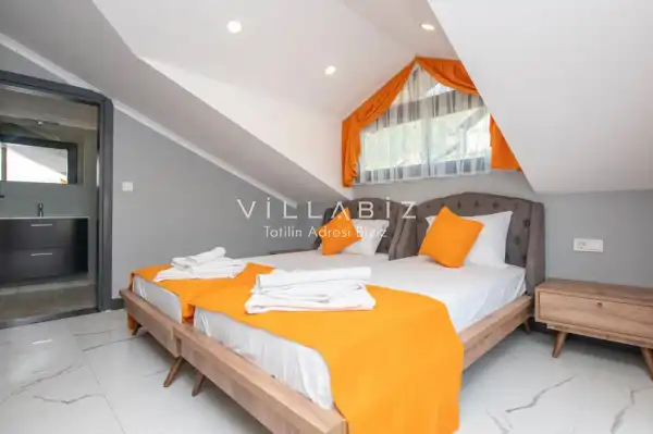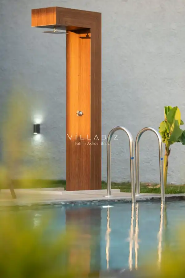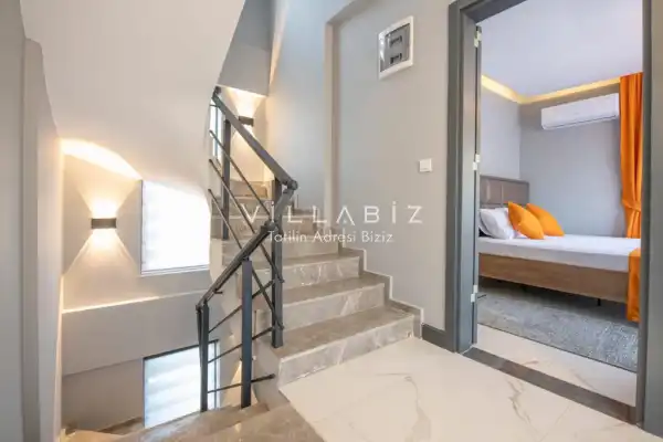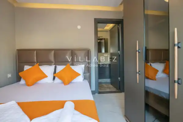Toplam 4 yatak odasından oluşmuş, 8 kişi konaklama kapasitesine sahiptir. Geniş aileler ve kalabalık arkadaş grupları için oldukça idealdir. Oldukça şık ve modern bir şekilde döşenmiş olan villamızda misafirlerimiz için herşey düşünülmüştür. Havuz terasında bulunan şezlonglarda güneşlenebilir, bahçe masasında muhteşem yemekler yiyebilir, salıncakta sallanıp keyifli dakikalar geçirebilirsiniz.