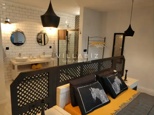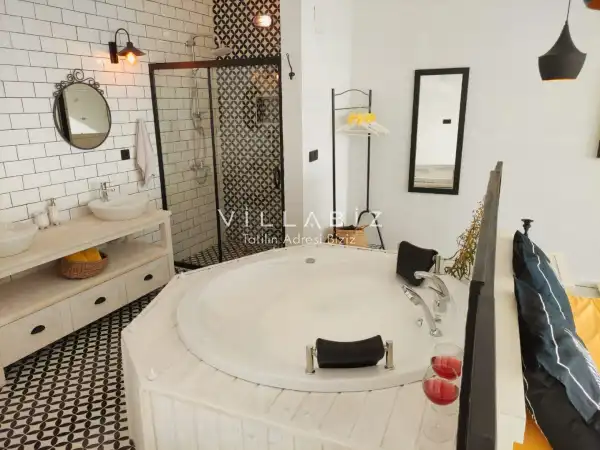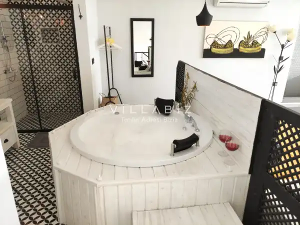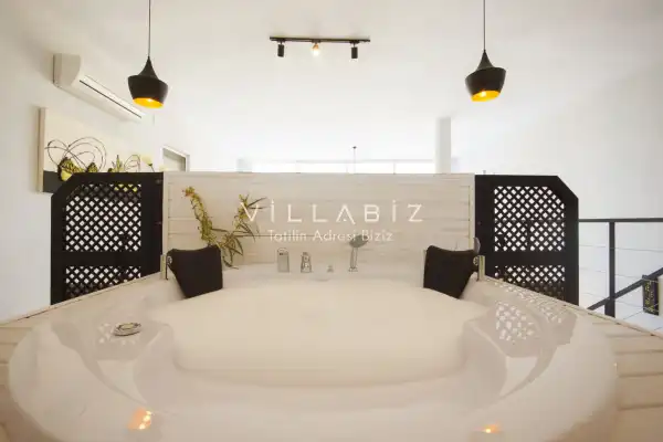 Muhteşem bir deniz manzarasına sahip olan villamız havuz terasının korunaklı yapısından dolayı ve balayı çiftleri için oldukça idealdir. Sevdiklerinizle birlikte günbatımına karşı içeceklerinizi yudumlayıp manzaranın tadını çıkarabilirsiniz. Villamızda bulunan jakuzi ise rahatlayıp tüm yılın yorgunluğunu üzerinizden atmanıza yardımcı olacaktır.