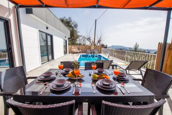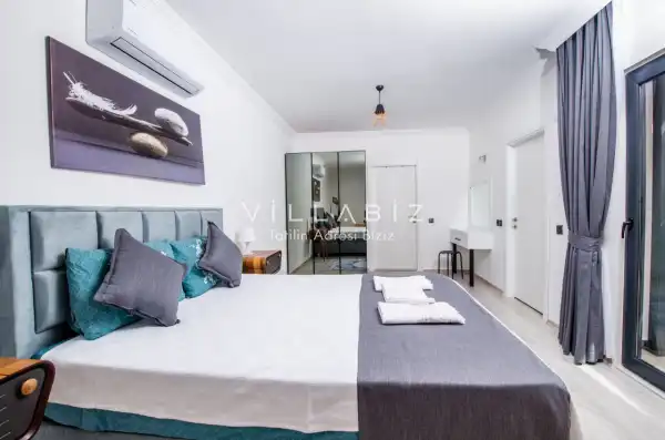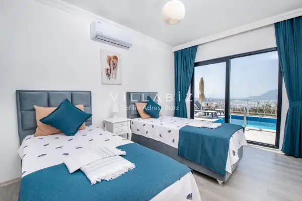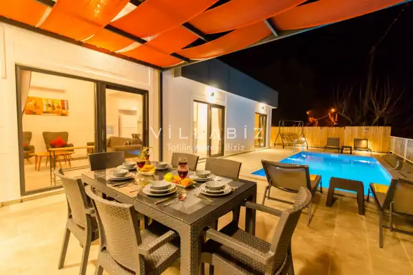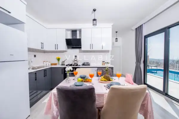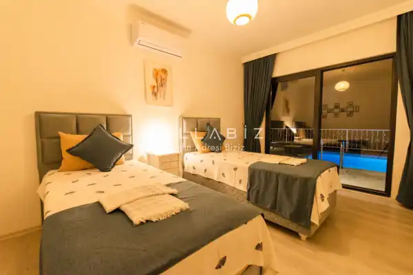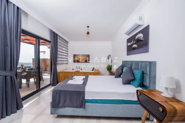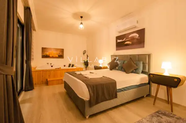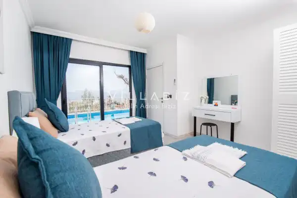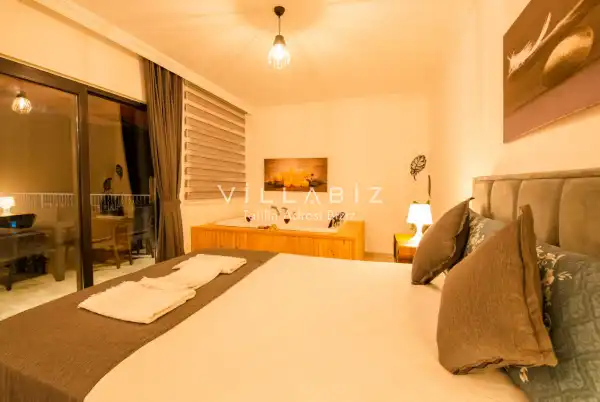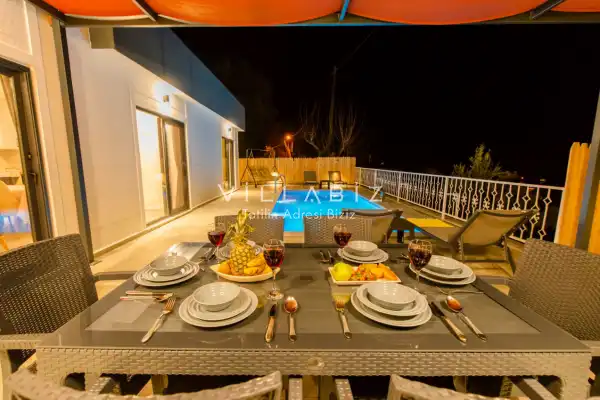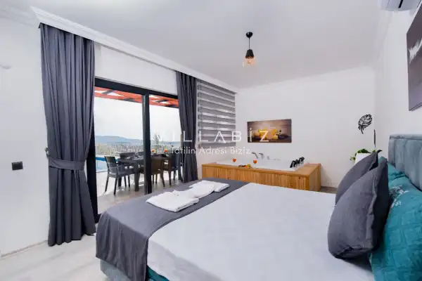 Villamız Antalya'nın en sakin ve Akdeniz koylarının masmavi büyüleyiciliğine sahip bölgesi Kalkan'ın Üzümlü mevkiinde yer almaktadır. Etrafını saran çam ve sedir ormanlarının, kusursuz maki iklimiyle birleştiği; sonunun hep sonsuz maviliklere eriştiği konumuyla kusursuz bir tatil isteyen balayı çiftlerimizin her anını özel ve unutulmaz kılmaktadır. Patara plajı, Kaputaş Plajı, Saklıkent Kanyonu, Gizlikent Şelalesi gibi turistik alanlara yakınlığıyla da trafiğe takılmadan etrafı keşfedecekleri bir tatil imkanı sunmaktadır.