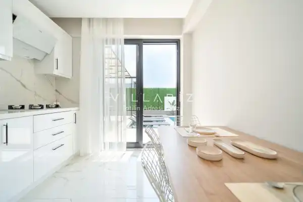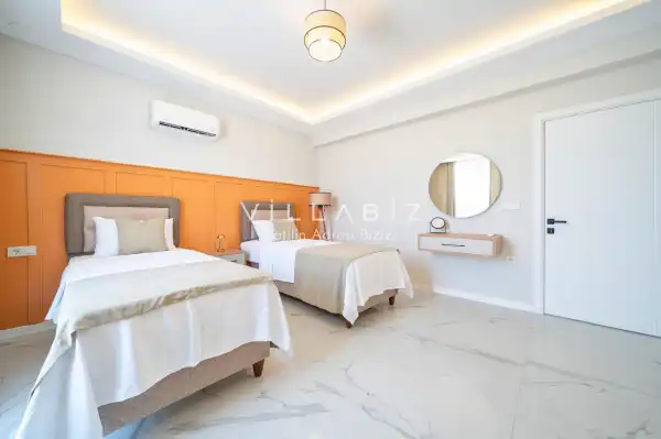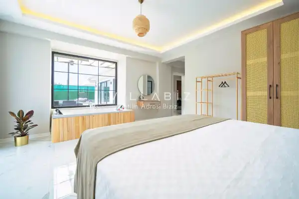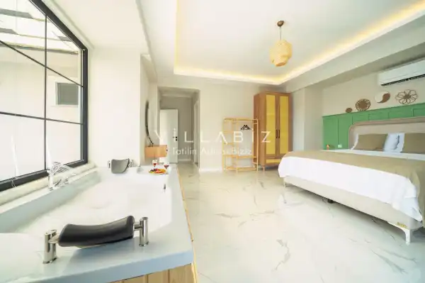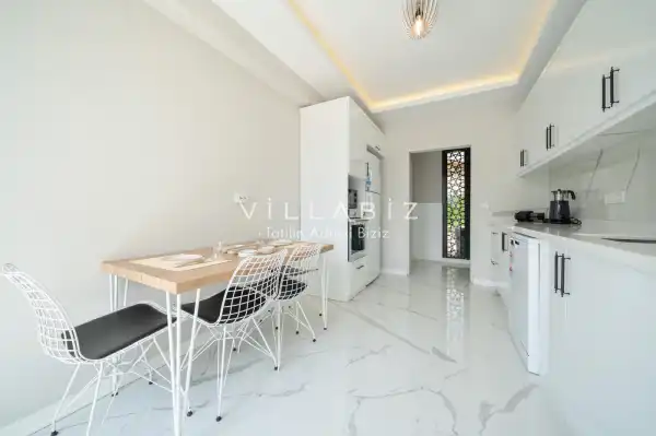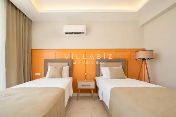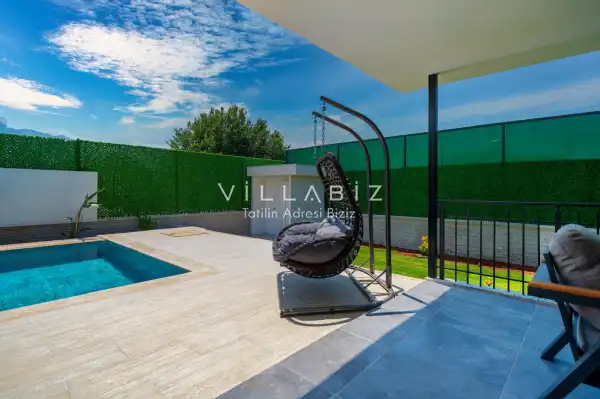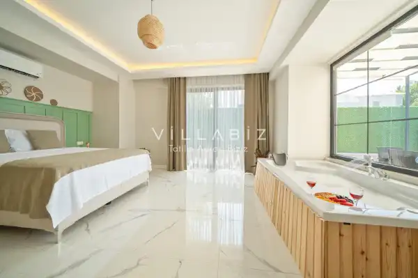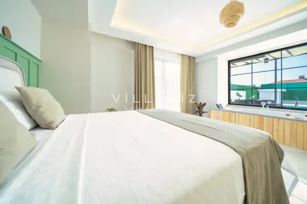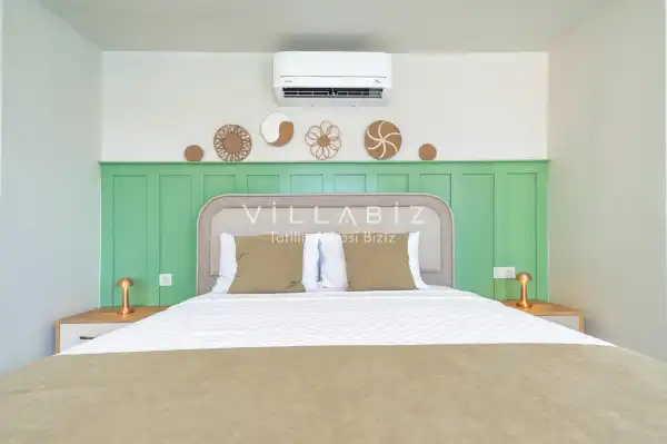 Toplam 2 yatak odasından oluşmuş, 4 kişi konaklama kapasitesine sahiptir. Çekirdek aileler ve arkadaş grupları ve balayı çiftleri için oldukça idealdir. Oldukça şık ve modern bir şekilde döşenmiş olan villamızda misafirlerimiz için her şey düşünülmüştür. Havuz terasında bulunan şezlonglarda güneşlenebilir, bahçe masasında muhteşem yemekler yiyebilir, salıncakta sallanıp keyifli dakikalar geçirebilirsiniz.