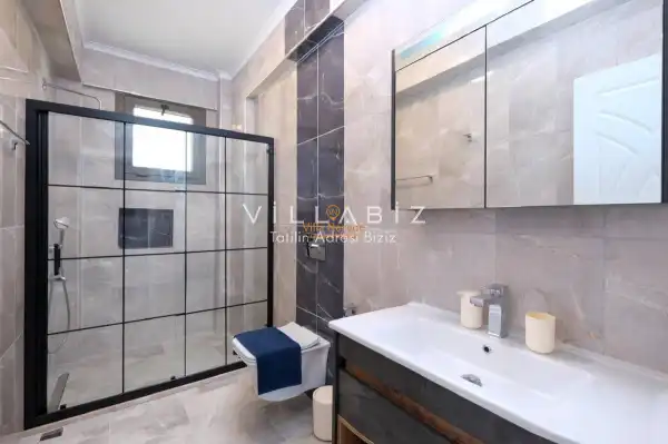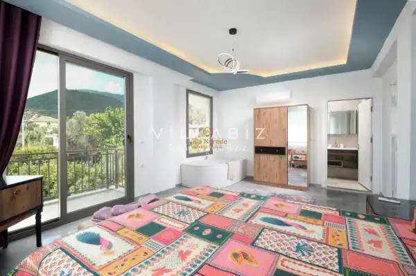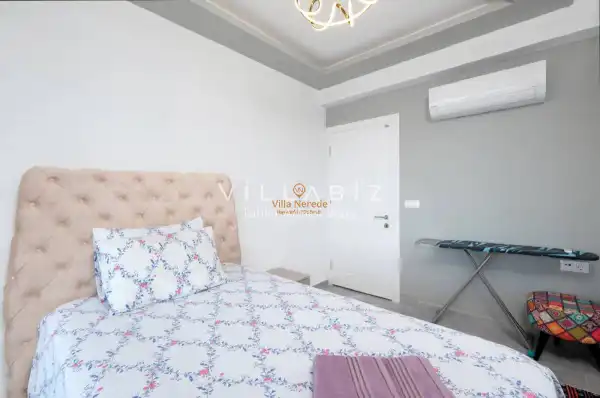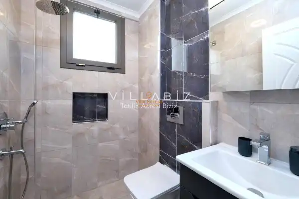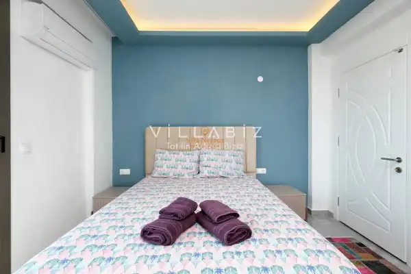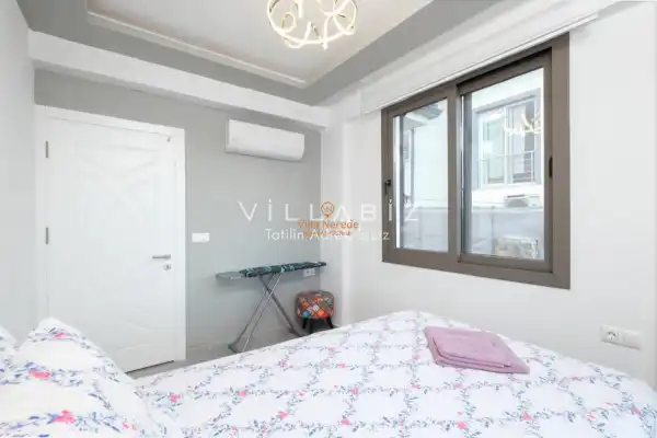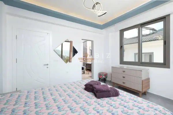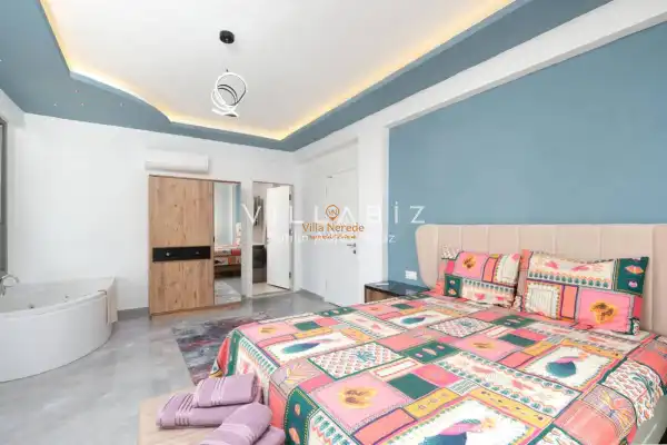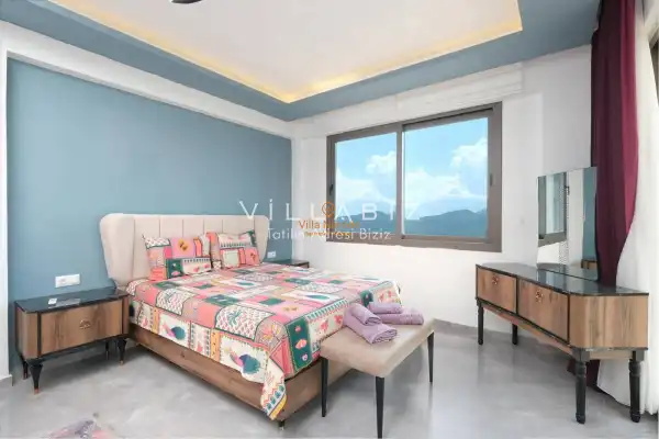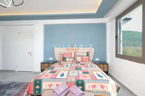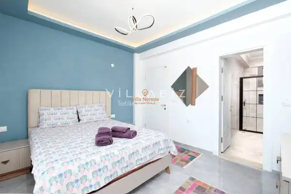 Toplam 3 yatak odasından oluşmuş, 6 kişi konaklama kapasitesine sahiptir. Geniş aileler ve kalabalık arkadaş grupları için oldukça idealdir. Oldukça şık ve modern bir şekilde döşenmiş olan villamızda misafirlerimiz için her şey düşünülmüştür. Havuz terasında bulunan şezlonglarda güneşlenebilir, bahçe masasında muhteşem yemekler yiyebilir, salıncakta sallanıp keyifli dakikalar geçirebilirsiniz.