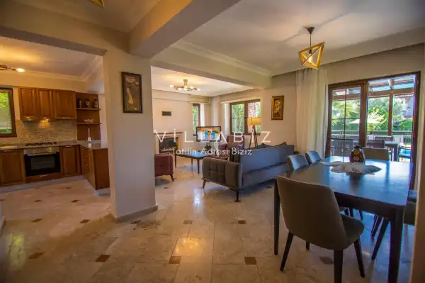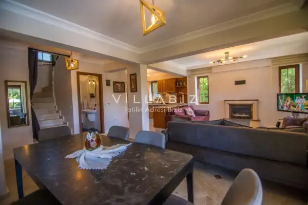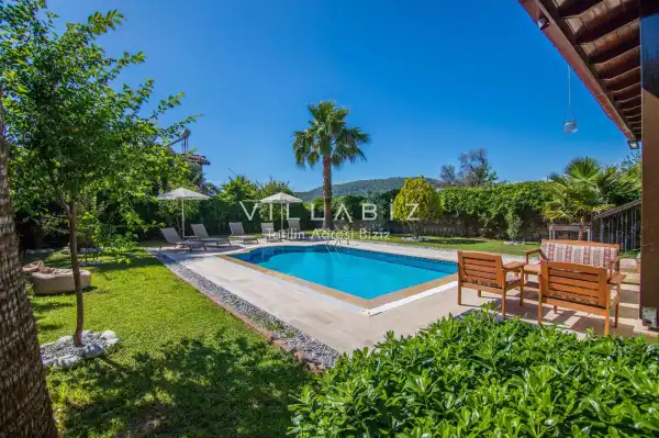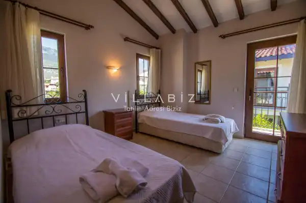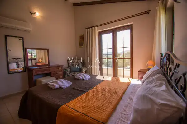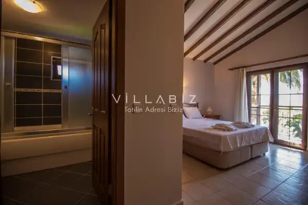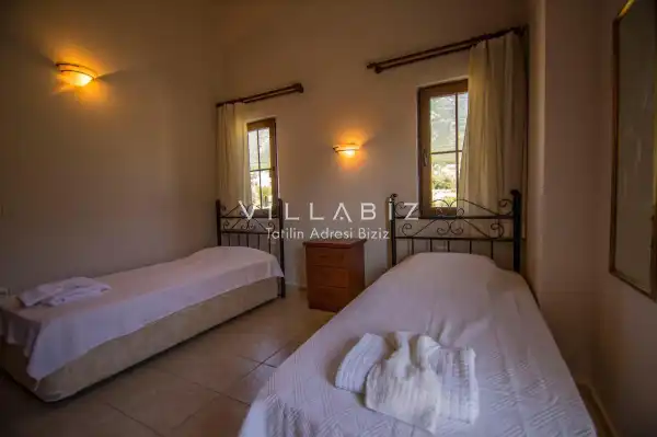 Toplam 3 yatak odasından oluşmuş, 6 kişi konaklama kapasitesine sahiptir. Geniş aileler ve kalabalık arkadaş grupları için oldukça idealdir. Oldukça şık ve modern bir şekilde döşenmiş olan villamızda misafirlerimiz için her şey düşünülmüştür. Havuz terasında bulunan şezlonglarda güneşlenebilir, bahçe masasında muhteşem yemekler yiyebilir, salıncakta sallanıp keyifli dakikalar geçirebilirsiniz.