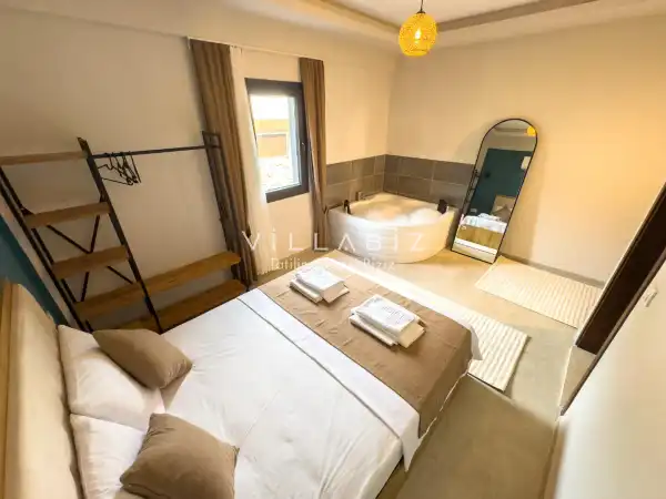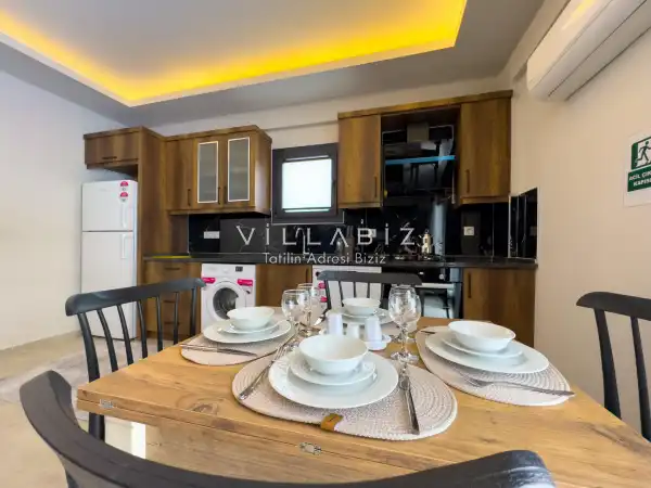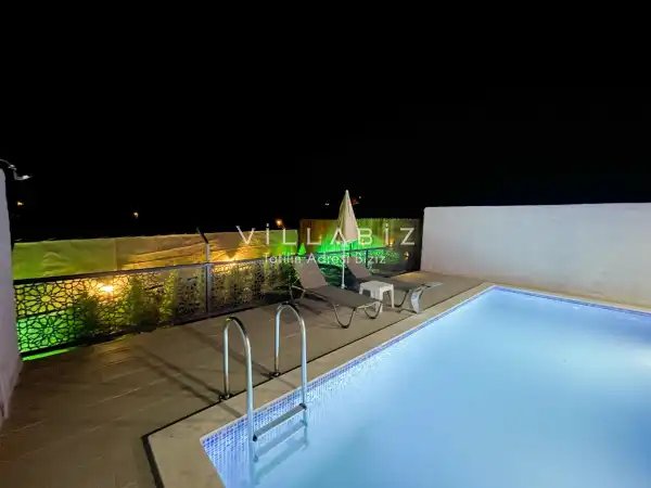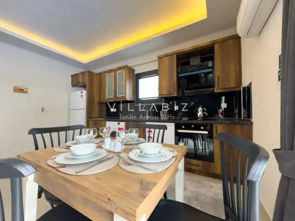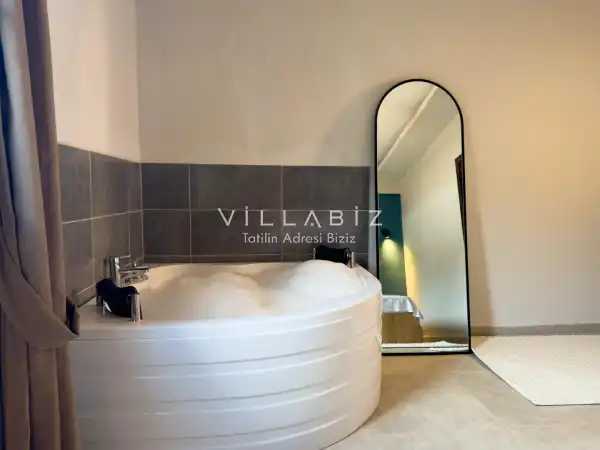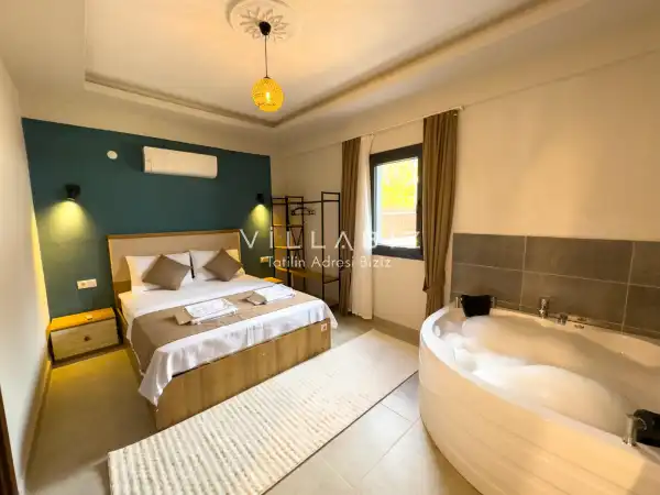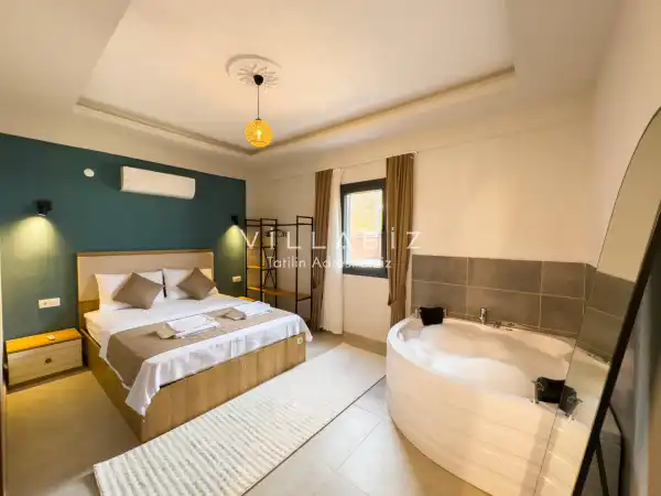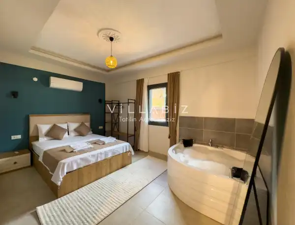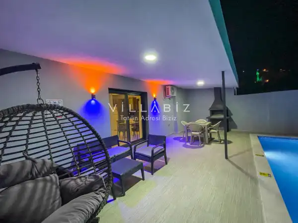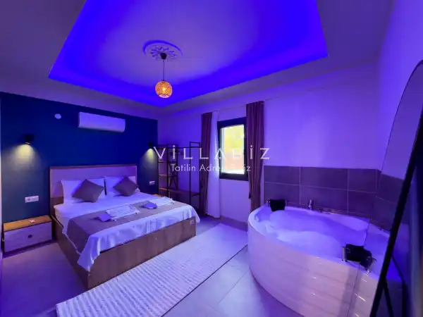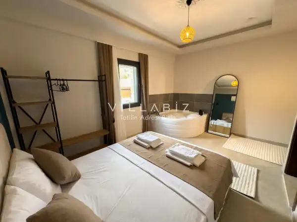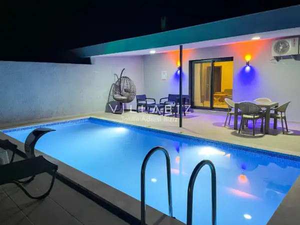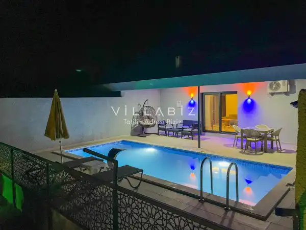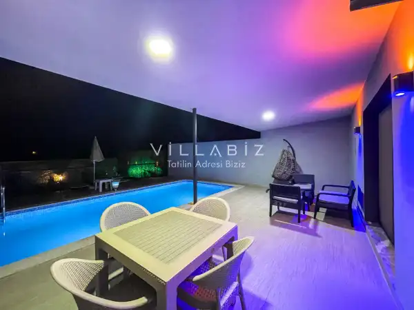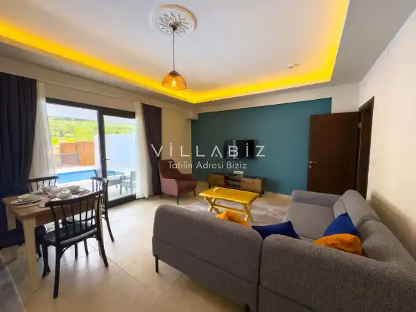 Toplam 2 yatak odasından oluşmuş, 4 kişi konaklama kapasitesine sahiptir. Çekirdek aileler ve arkadaş grupları ve balayı çiftleri için oldukça idealdir. Oldukça şık ve modern bir şekilde döşenmiş olan villamızda misafirlerimiz için her şey düşünülmüştür. Havuz terasında bulunan şezlonglarda güneşlenebilir, bahçe masasında muhteşem yemekler yiyebilir, salıncakta sallanıp keyifli dakikalar geçirebilirsiniz.