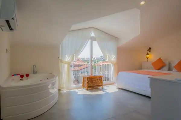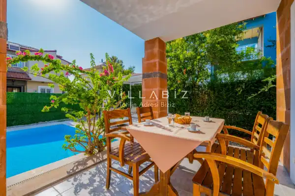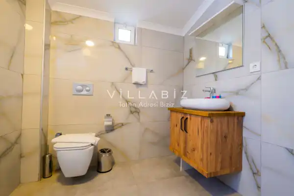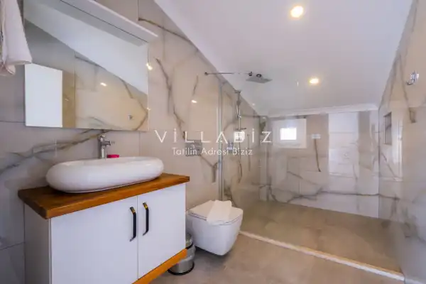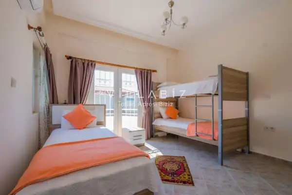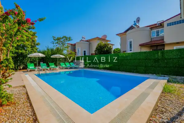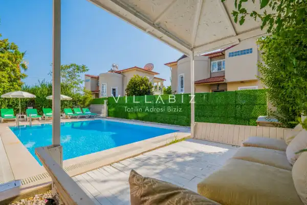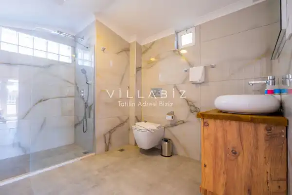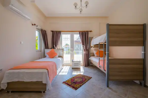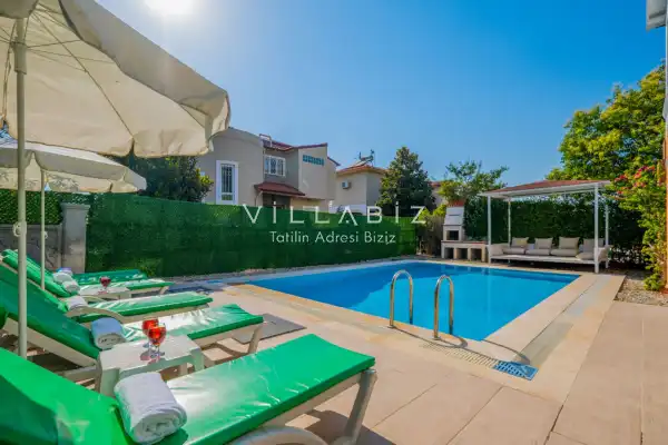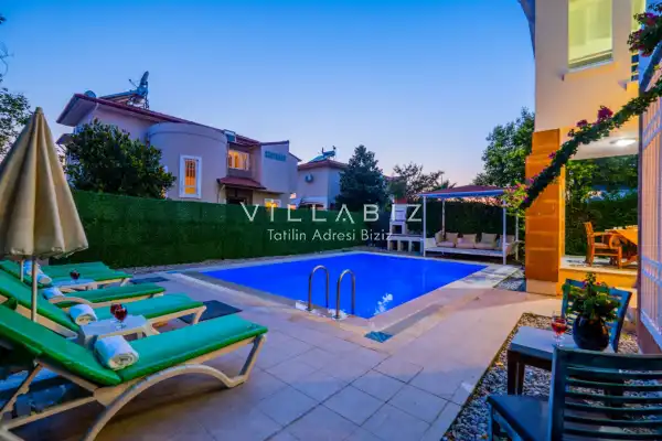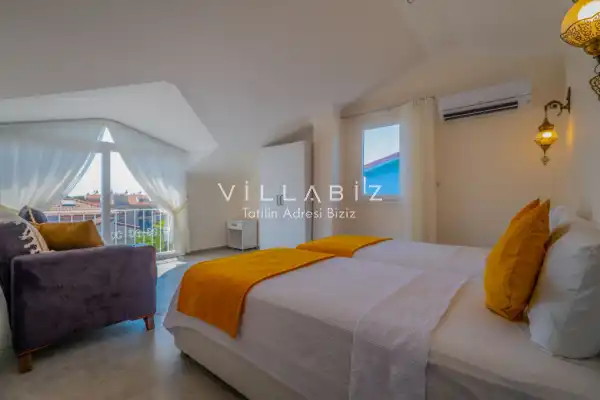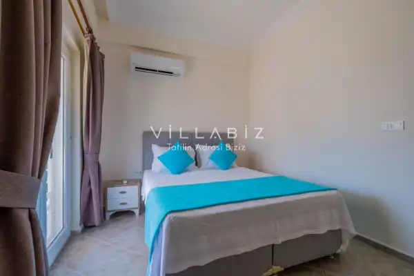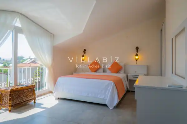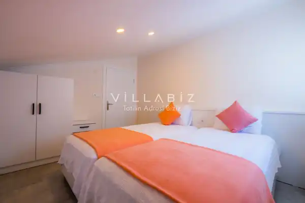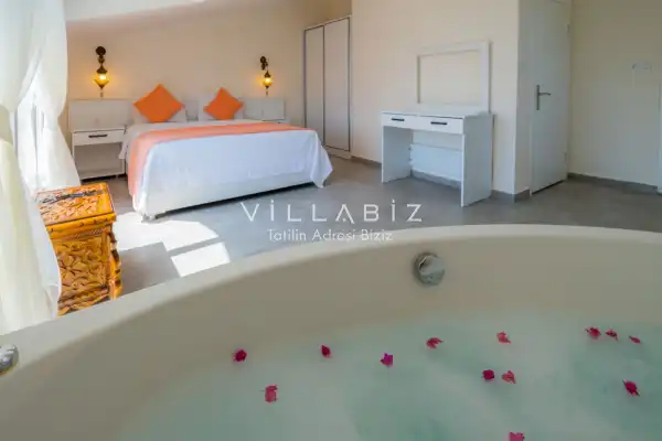 Toplam 5 yatak odasından oluşmuş, 11 kişi konaklama kapasitesine sahiptir. Geniş aileler ve kalabalık arkadaş grupları için oldukça idealdir. Oldukça şık ve modern bir şekilde döşenmiş olan villamızda misafirlerimiz için herşey düşünülmüştür. Havuz terasında bulunan şezlonglarda güneşlenebilir, bahçe masasında muhteşem yemekler yiyebilir, salıncakta sallanıp keyifli dakikalar geçirebilirsiniz.