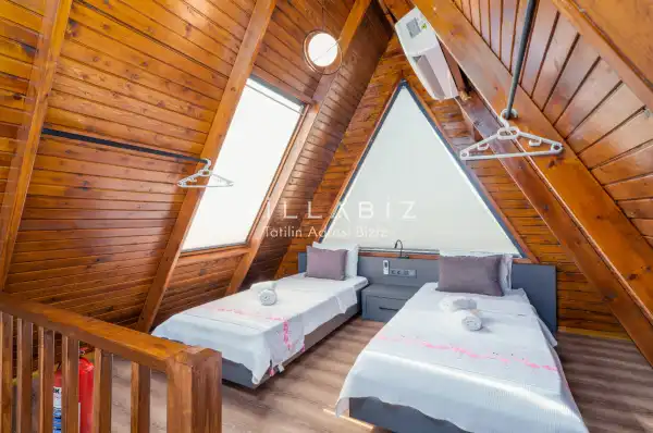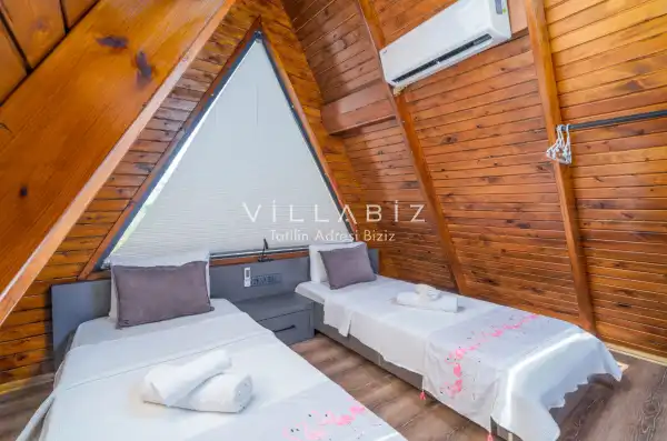 Villa 2 yatak odalı olup 4 kişilik konaklama kapasitesine sahiptir. 1. Yatak odasında konforlu bir çift kişilik yatak, klima, elbise dolabı;  2.Yatak odasında konforlu iki tek kişilik yatak, klima, elbise dolabı bulunmaktadır. Salon bölümünde modern oturma grubu, televizyon, klima ve açık plan tam donanımlı mutfak ve banyo yer almaktadır. Mutfakta buzdolabı, ocak, fırın, yemek takımları ve temel mutfak ekipmanları eksiksiz şekilde sunulmaktadır.