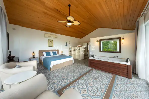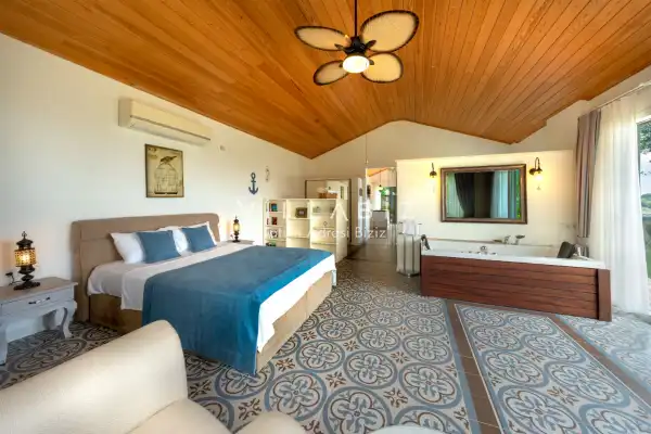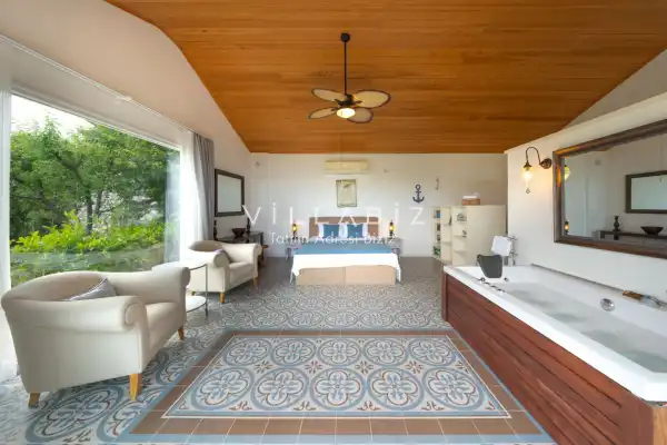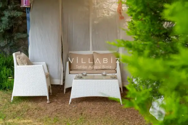 Villa Yasemin 2 kişilik kapasiteye sahip villada tek yatak odası yer alıyor. Villanın banyosu ve yatak odasında şık bir jakuzisi mevcut. Açık mutfağı ve kendine ait bahçesinde bir havuzu var. Mutfağında bulaşık makinesi, buzdolabı, ankastre fırın, tost makinesi ve mutfakta ihtiyaç olan hemen hemen bütün gereçler bulunuyor. Barbekü, masa, sandalyeler, şezlonglar ve şemsiyeler bahçe keyfini sınırsız yaşamanıza imkan tanıyor. Salonunda oturma grubu, televizyon, eşyalar bulunurken, tüm odalar için ayrı klima imkanı var. Şık ve kullanışlı bahçe alanı ve bohem tarzı ile sizleri keyifli bir tatil bekliyor.