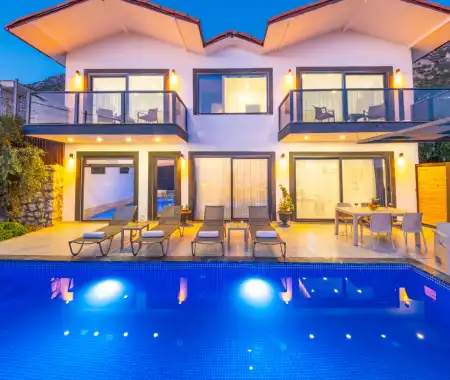 Villamız Antalya’nın en çok tercih edilen tatil bölgesi Kaş/Kalkan Kördere mevkiinde yer almaktadır. Masmavi koylara ve muhteşem adalar manzarasına hakim bir noktadadır. Doğa içerisinde, bol oksijenli tertemiz havasıyla konaklayanlarına sağlıklı ve dingin bir tatilin kapılarını aralamaktadır