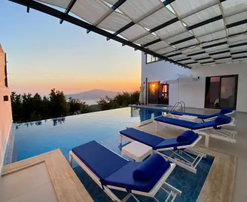 Villamız Antalya’nın en çok tercih edilen tatil bölgesi Kalkan/Kördere mevkiinde yer almaktadır. Masmavi koylara ve muhteşem adalar manzarasına hakim bir noktadadır. Doğa içerisinde, bol oksijenli tertemiz havasıyla konaklayanlarına sağlıklı ve dingin bir tatilin kapılarını aralamaktadır