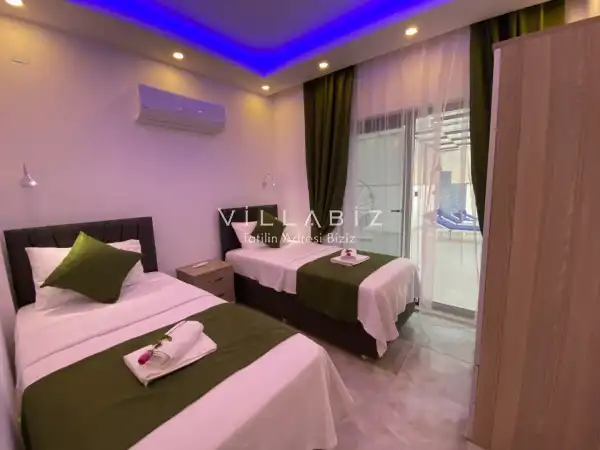 Villa temiz bir şekilde misafirlere teslim edilmekte ve iki haftalık konaklamalarda birinci haftanın sonunda temizlik yapılmaktadır.