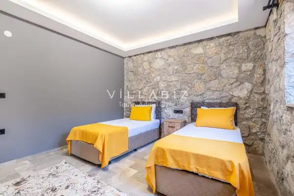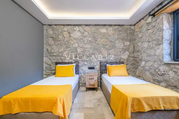 Villa Zetin's,  4 kişilik kapasiteye sahip villada 2 yatak odası yer alıyor. Villanın birer banyosu ve jakuzisi mevcut. Açık mutfağı ve kendine ait bahçesinde bir havuzu var. Mutfağında bulaşık makinesi, buzdolabı, ankastre fırın, tost makinesi ve mutfakta ihtiyaç olan hemen hemen bütün gereçler bulunuyor. Barbekü, masa, sandalyeler, şezlonglar ve şemsiyeler bahçe keyfini sınırsız yaşamanıza imkan tanıyor. Salonunda oturma grubu, televizyon, eşyalar bulunurken, tüm odalar için ayrı klima imkanı var.