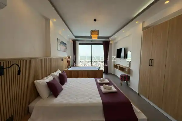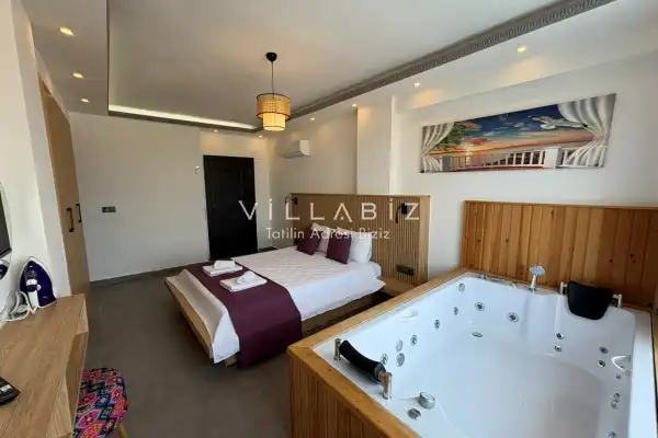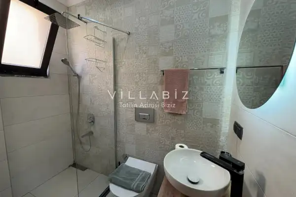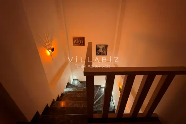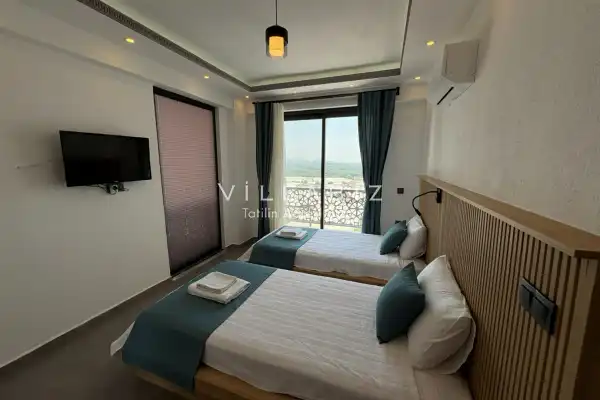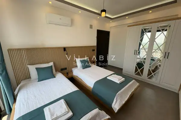Toplam 4 yatak odasından oluşmuş, 6 kişi konaklama kapasitesine sahiptir. Geniş aileler ve kalabalık arkadaş grupları için oldukça idealdir. Oldukça şık ve modern bir şekilde döşenmiş olan villamızda misafirlerimiz için her şey düşünülmüştür. Havuz terasında bulunan şezlonglarda güneşlenebilir, bahçe masasında muhteşem yemekler yiyebilir, salıncakta sallanıp keyifli dakikalar geçirebilirsiniz.